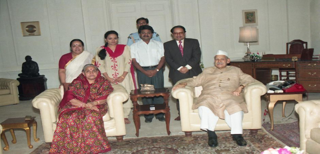 The President of India, Dr. Shankar Dayal Sharma meeting with Smt. Satya Behan, Ex-MP with others at Rashtrapati Bhavan in New Delhi on March 23, 1994.