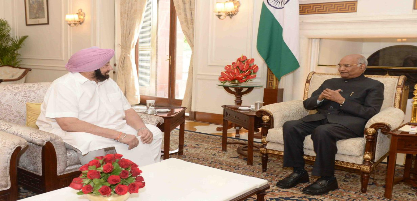 The Chief Minister of Punjab, Capt. Amarinder Singh meeting with the President of India, Shri Ram Nath Kovind, at Rashtrapati Bhavan on October 03, 2019.