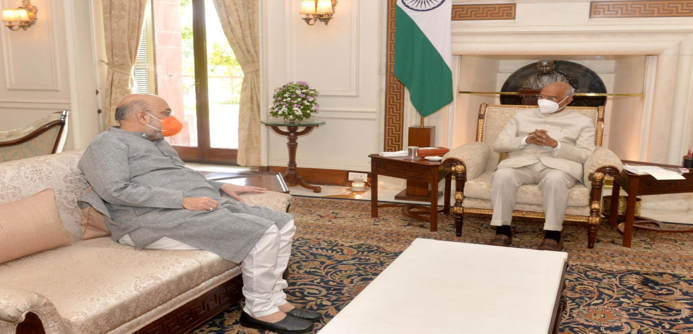 The Union Minister of Home Affairs, Shri Amit Shah calling on the President of India, Shri Ram Nath Kovind, at Rashtrapati Bhavan on July 09, 2021.