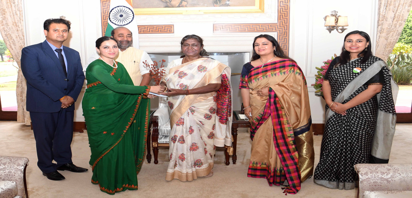 Dr binny Sareen along with BK Neena and BK Rrakesh Kumar Sareen meeting with the President of India, Smt. Droupadi Murmu, at Rashtrapati Bhavan on March 25, 2023.