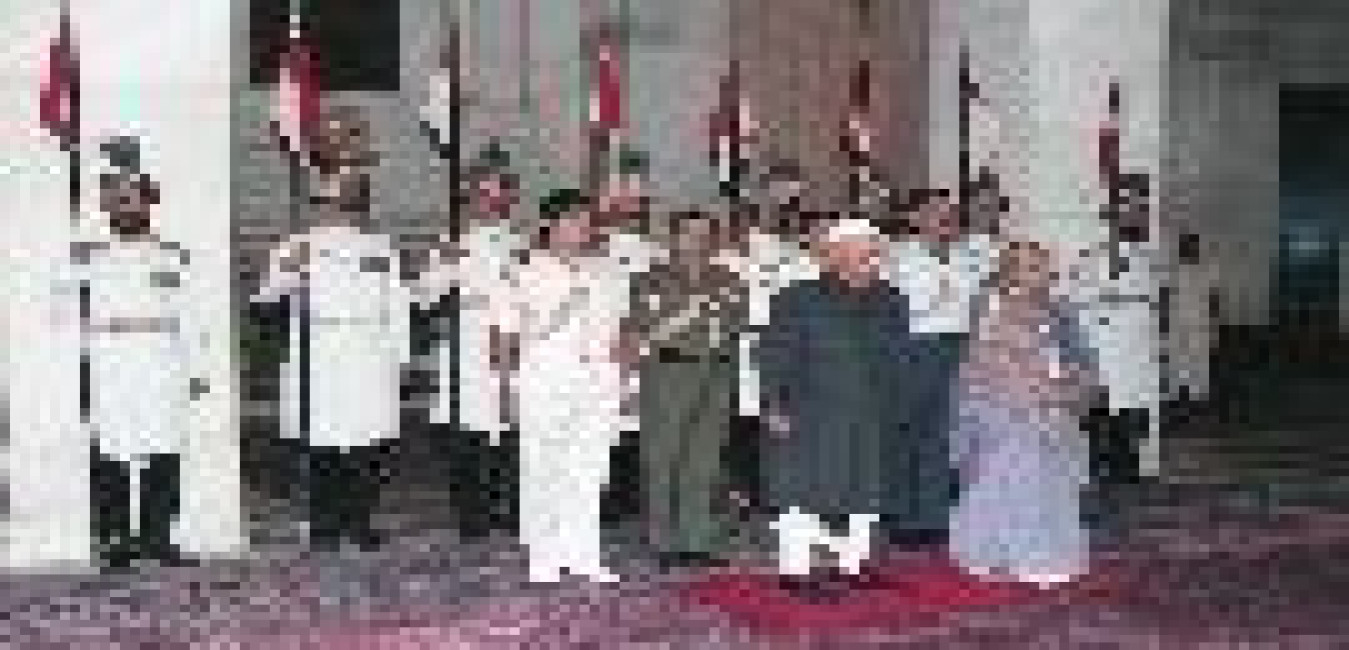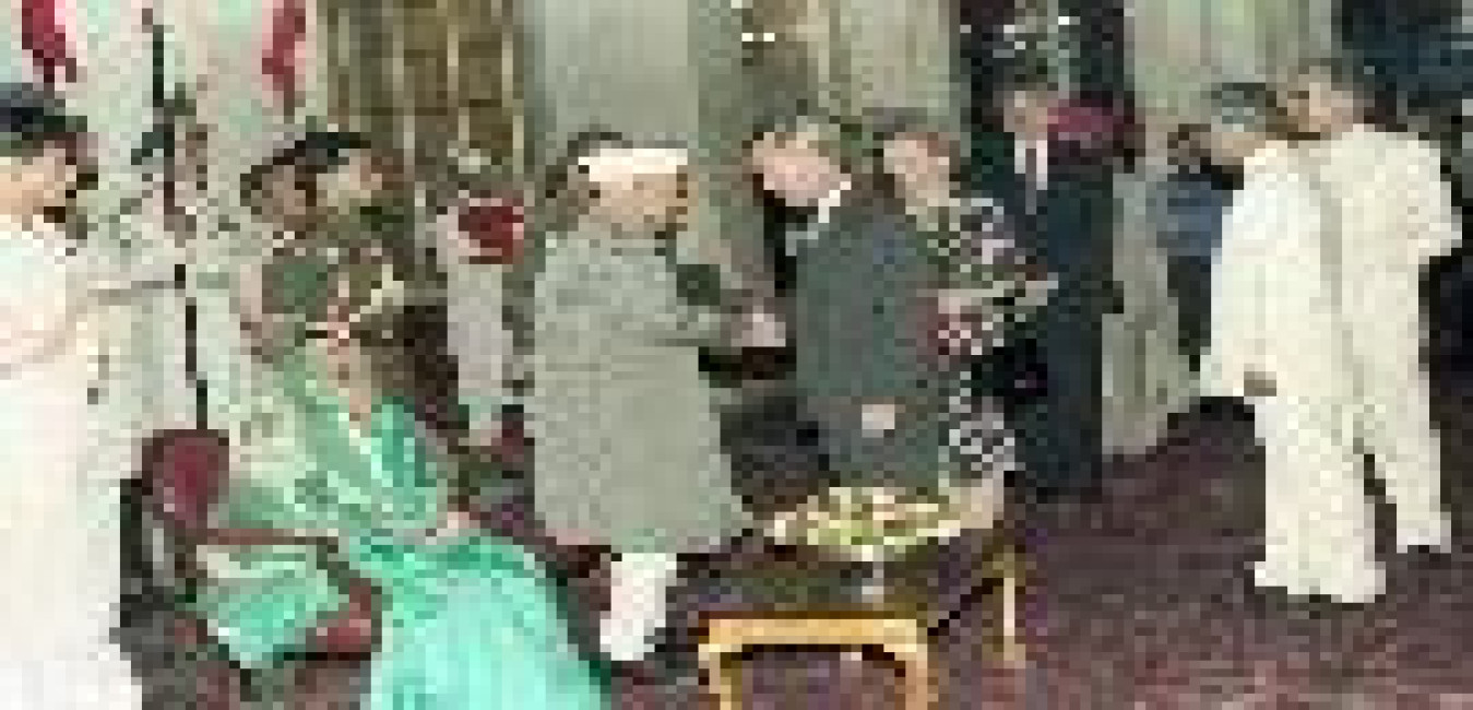 The President of India, Dr. Shankar Dayal Sharma meeting with Begum Aisha Qurja with others at Rashtrapati Bhavan in New Delhi on July 24, 1997
