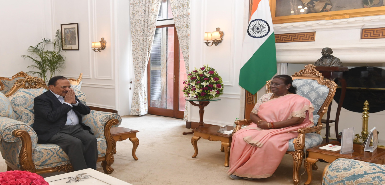 Shri Ajit Doval, KC, National Security Adviser to the Prime Minister meeting with the President of India Smt Droupadi Murmu at Rashtrapati Bhavan on February 26, 2024.