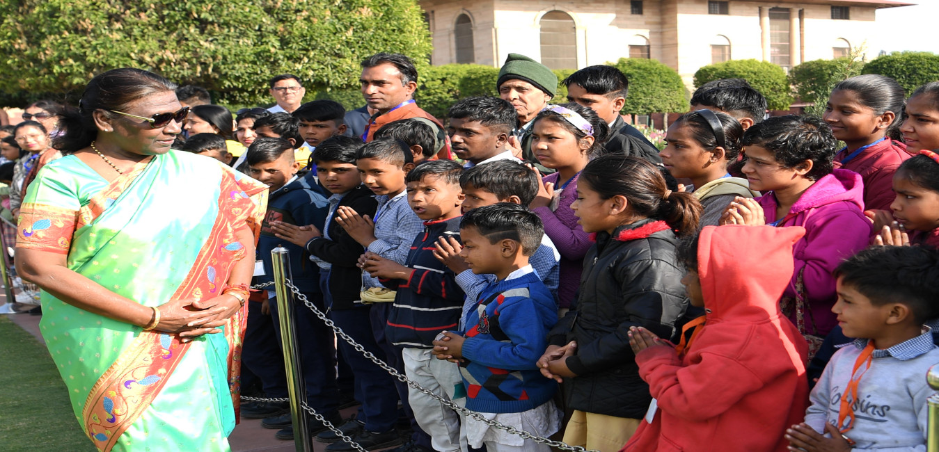 The President of India, Smt Droupadi Murmu interacted with children from various orphanages at Amrit Udyan, Rashtrapati Bhavan on March 5, 2024.