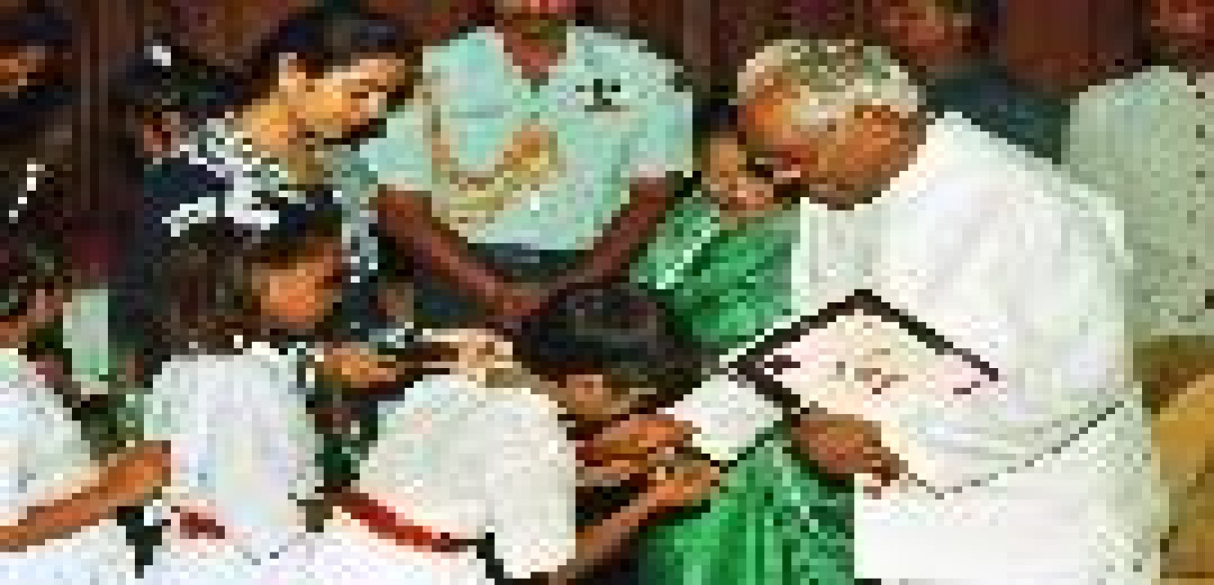 The President of India, Shri K R Narayanan receiving Raksha Bandhan Greetings at the Committee Room of Rashtrapati Bhavan in New Delhi on Aug 18, 1997