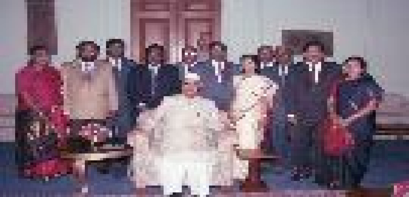 The President of India, Dr. Shankar Dayal Sharma meeting with Shri E. Ahmed with his family at Rashtrapati Bhavan in New Delhi on June 11, 1994.