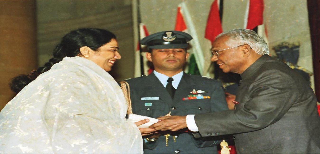 The President of India, Shri K R Narayanan presenting the Sangeet Natak Akademi Awards at the Darbar Hall of Rashtrapati Bhavan in New Delhi on Dec 17, 1999