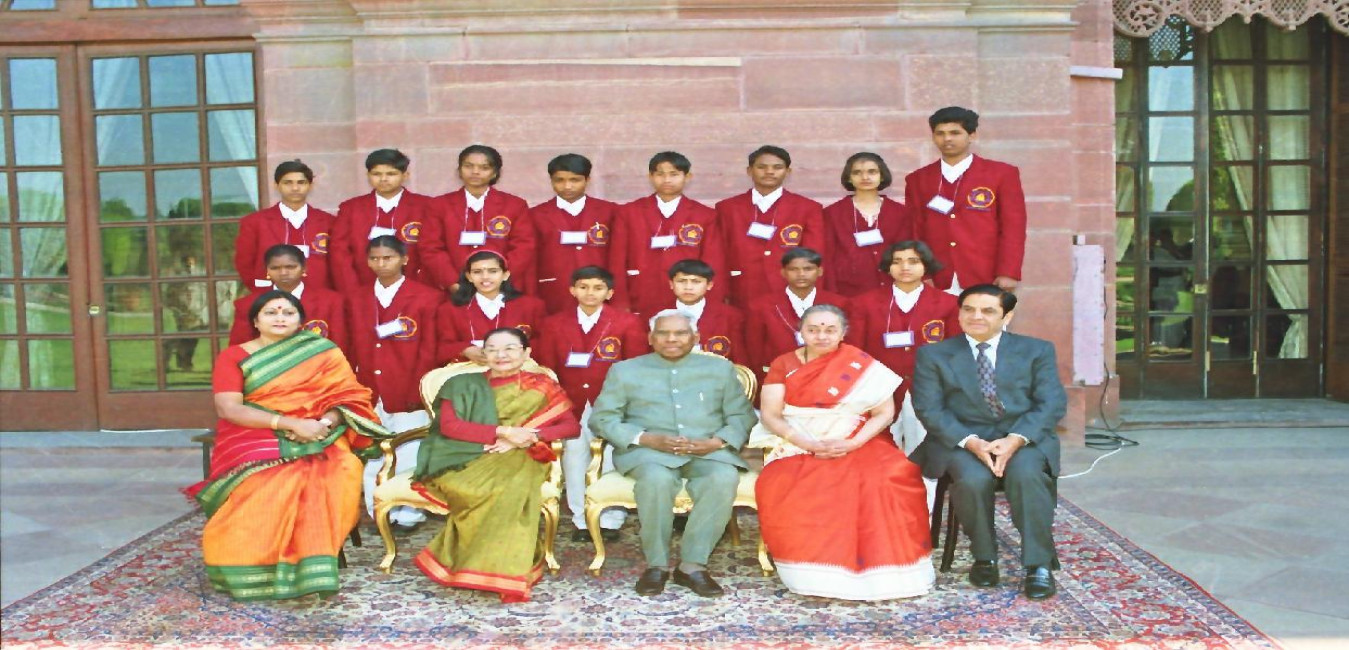 The President of India, Shri K R Narayanan meeting with the National Bravery Awards Winning Children with their Escorts and the Officials of the Indian Council for Child Welfare at the Yellow Drawing Room of Rashtrapati Bhavan in New Delhi on Jan 20, 2000
