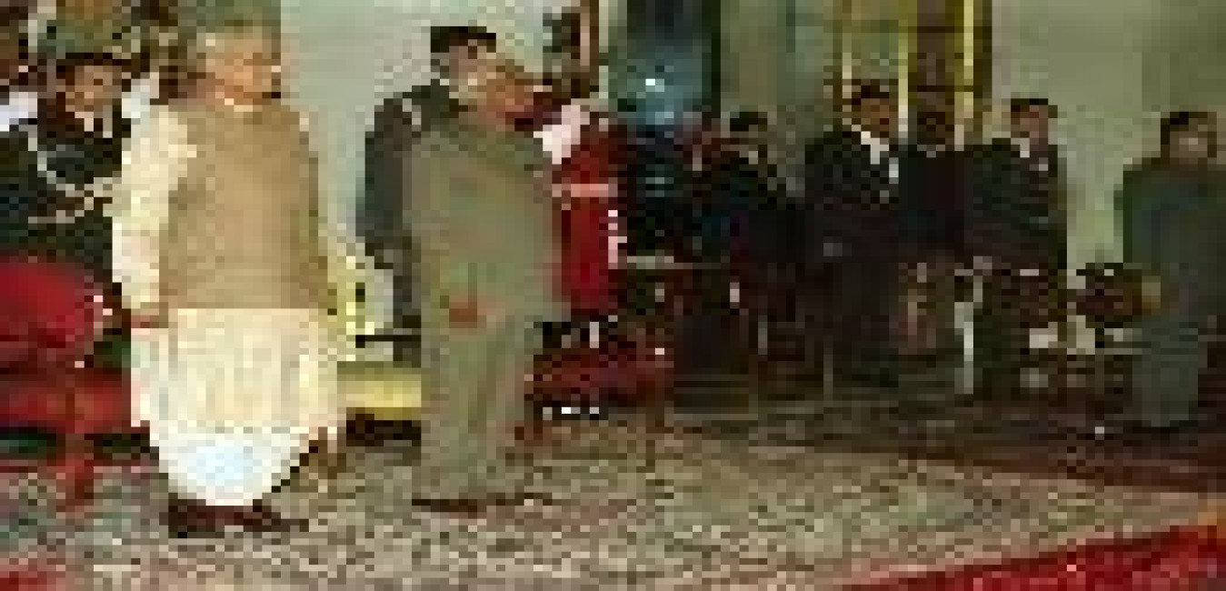 The President of India, Shri K R Narayanan being conferred the Honorary Rank of General of the Indian Army on General Prajwalla Shumsher Jung Bahadur Rana Tri Sha Te Chief of the Army Staff Royal Nepal Army at the Ashok Hall of Rashtrapati Bhavan in New Delhi on Feb 25, 2000