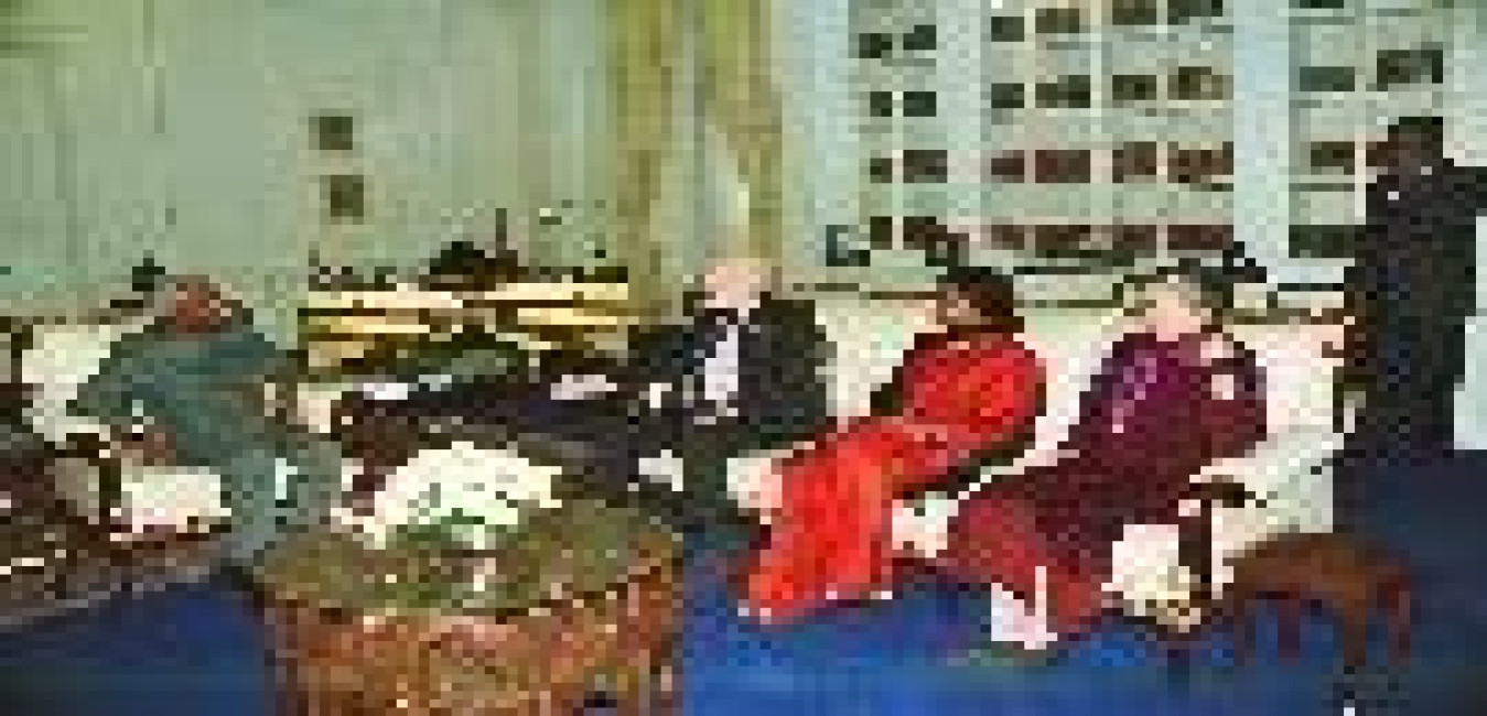 The President of India, Shri K R Narayanan interacting with the Director General of World Health Organisation, Dr Gro Harlem Brundtland at the Morning Room of Rashtrapati Bhavan in New Delhi on Jan 08, 2000