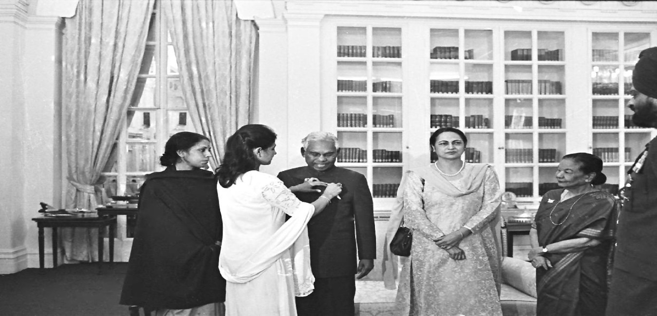 The President of India, Shri K R Narayanan receiving the Greetings from Staff and their Families at the East Lawn of Rashtrapati Bhavan in New Delhi on Oct 26, 2000
