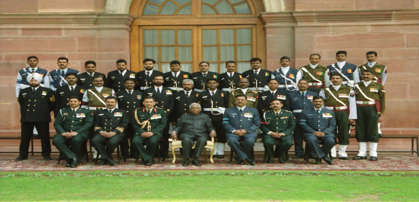 The President of India, Shri K R Narayanan posing for a Group Photograph with Service Outriders and JAK LI Regt Centre Brass Band at the North Court of Rashtrapati Bhavan in New Delhi on Jan 30, 2001