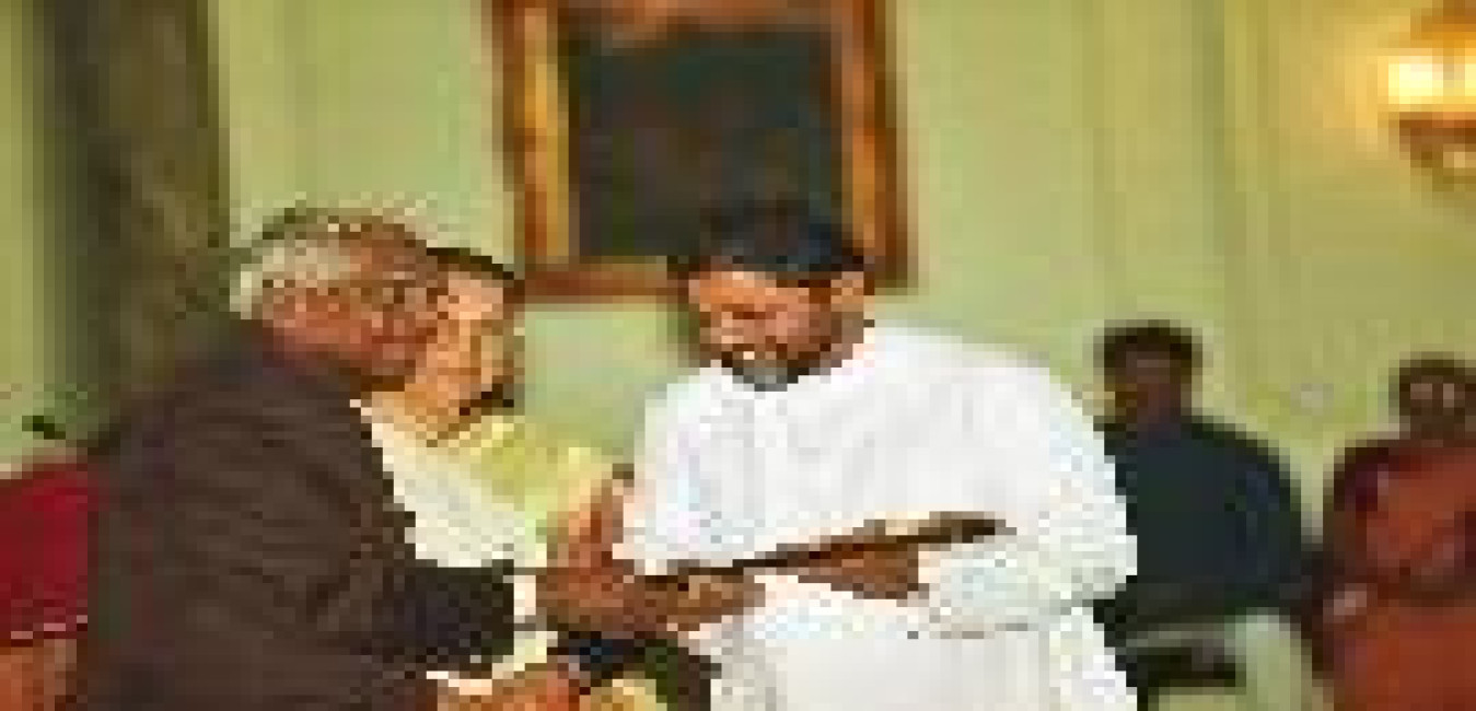 The President of India, Shri K R Narayanan accepting the Honorary Fellowship of the Royal College of Physicians and Surgeons of Glasgow at the Yellow Drawing Room of Rashtrapati Bhavan in New Delhi on Feb 18, 2002