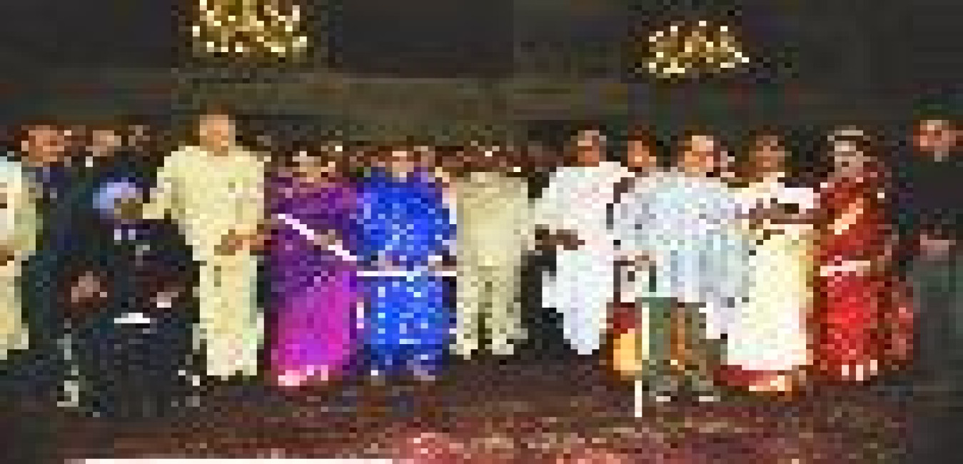 The President of India, Shri K R Narayanan presenting the Awards of Certificate of Honour to Scholars of Sanskrit Pali Prakrit Arabic and Persian Languages for the Years at the Ashok Hall of Rashtrapati Bhavan in New Delhi on Feb 06, 2002