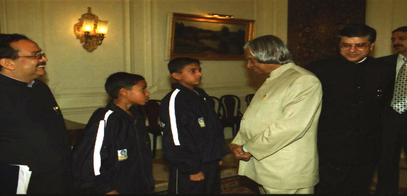 The Student from DPS RK Puram Govt Boys Sr Sec School calling on the President of India, Dr A P J Abdul Kalam at the Herbal Garden of Rashtrapati Bhavan in New Delhi on May 05, 2003