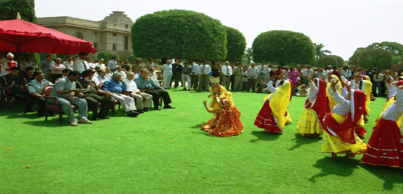 The President of India, Dr A P J Abdul Kalam receiving the Holi Greetings from MCD'S School and others Children at the Central Lawn of Rashtrapati Bhavan in New Delhi on March 19, 2003
