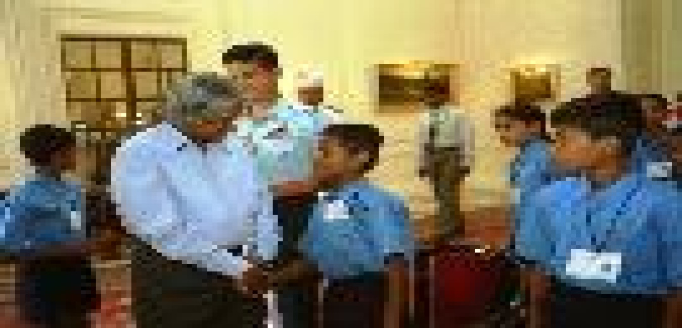 The Children and Officials of Public Advocacy Initiatives for Rights and Values in India calling on the President of India, Dr A P J Abdul Kalam at the Yellow Drawing Room of Rashtrapati Bhavan in New Delhi on July 24, 2003