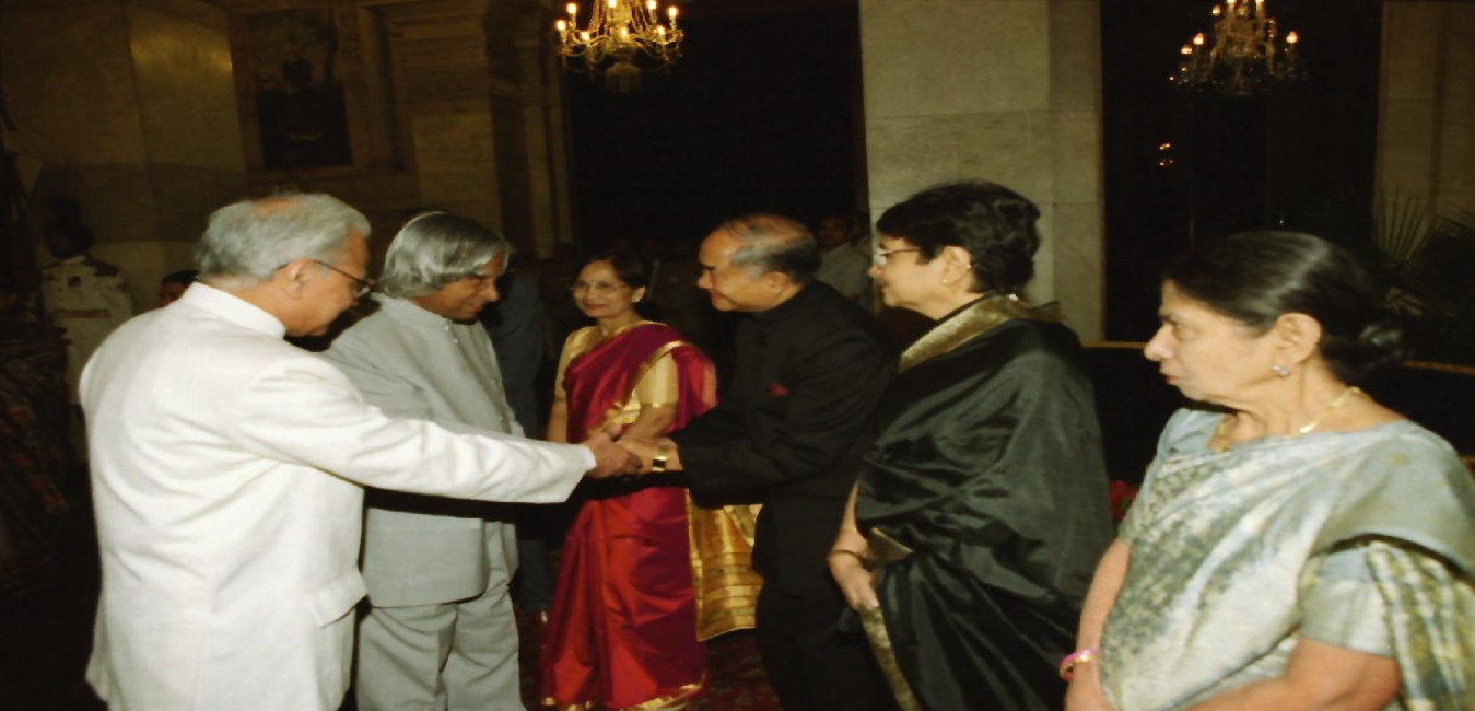 The Members of Trust from Lutyens calling on the President of India, Dr A P J Abdul Kalam at the Yellow Drawing Room of Rashtrapati Bhavan in New Delhi on Oct 08, 2003