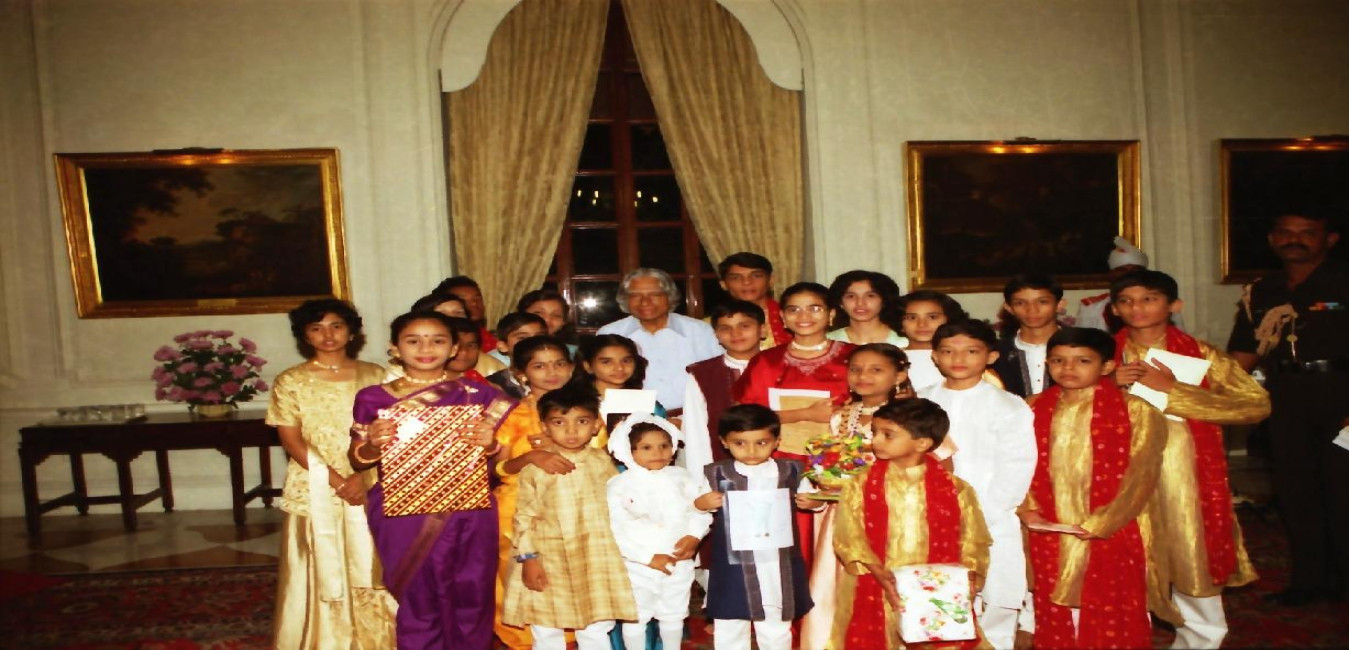 The President of India, Dr A P J Abdul Kalam at a Programme by the Children of Bal Samvedna Guna Vikas Yojana at Rashtrapati Bhavan in New Delhi on Oct 30, 2003