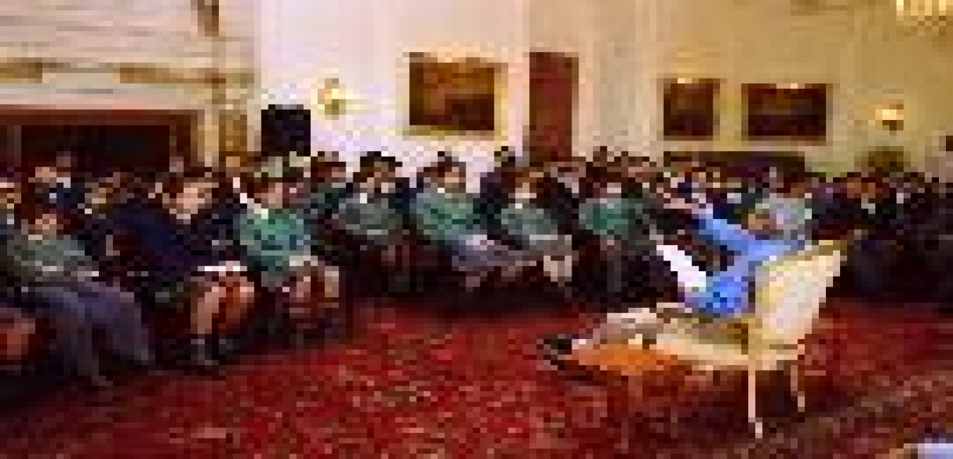The Student Participants of OP SAMPARK Student Excursion to North East organized by the Directorate General Assam Rifles calling on the President of India, Dr A P J Abdul Kalam at the Yellow Drawing Room of Rashtrapati Bhavan in New Delhi on Dec 31, 2003