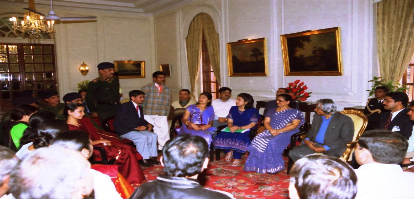 The President of India, Dr A P J Abdul Kalam with Smt Usha Ram, Principal, Laxman Public School, Shri Hari Ram, Special Children and Special Educators at Rashtrapati Bhavan in New Delhi on Dec 02, 2003