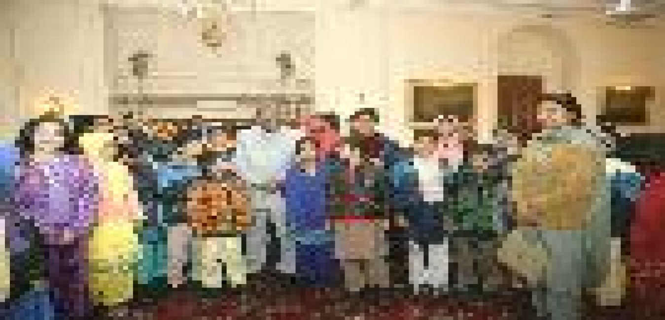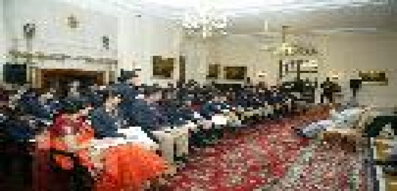 The Children and ladies from Raahat Ghar Handwara Kupwara District Jammu & Kashmir and Officials of Guild of Service calling on the President of India, Dr A P J Abdul Kalam at the Yellow Drawing Room of Rashtrapati Bhavan in New Delhi on Feb 03, 2004