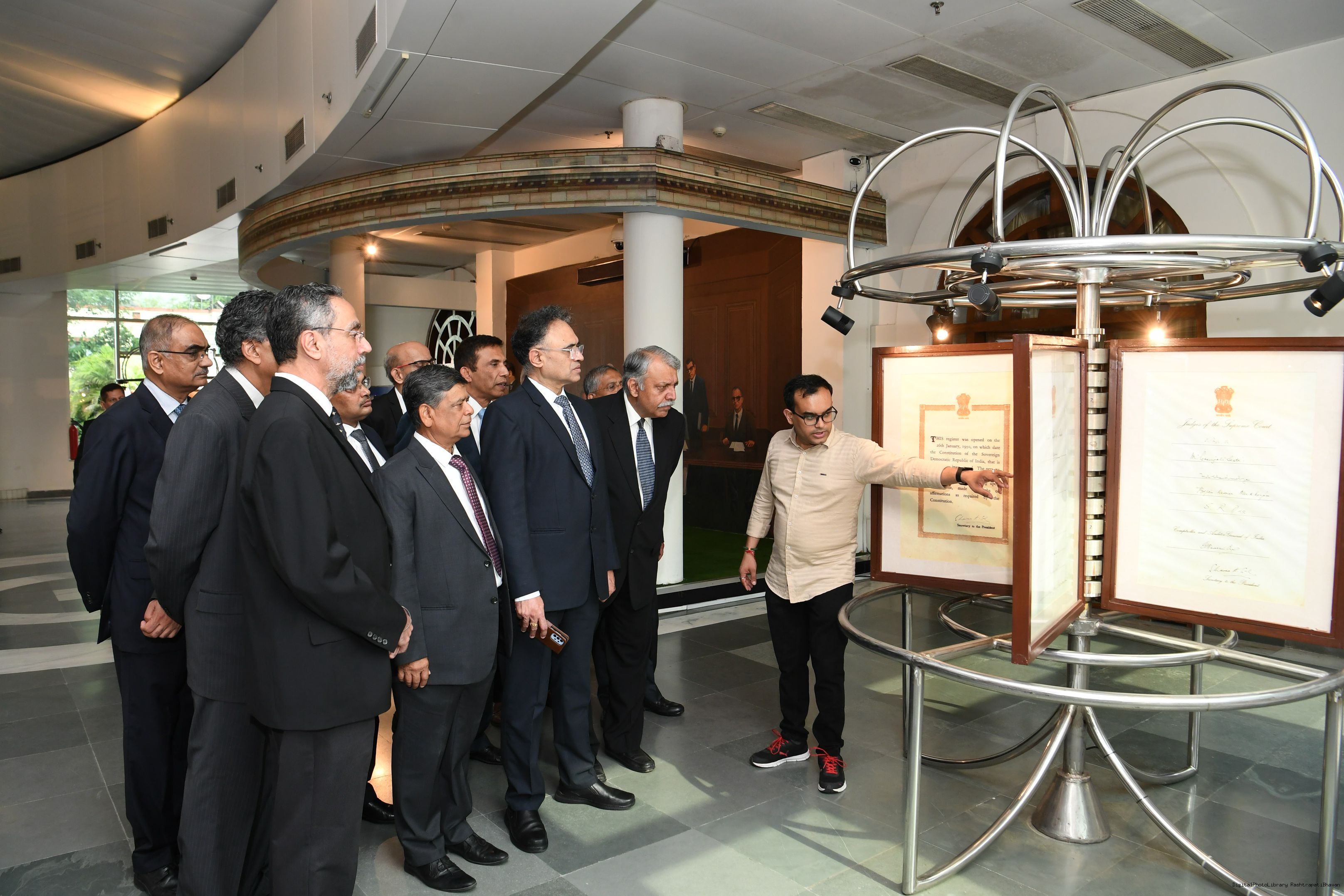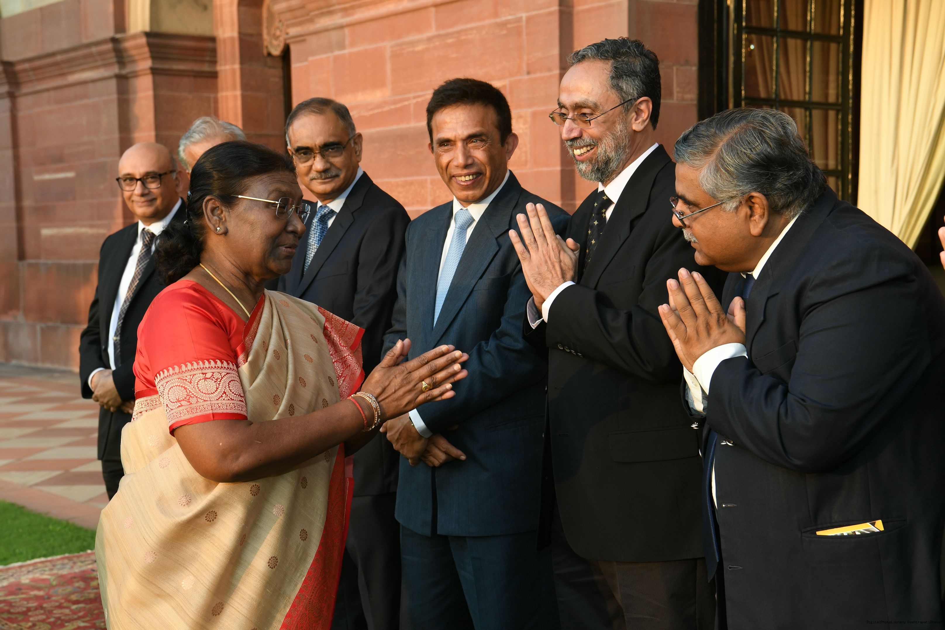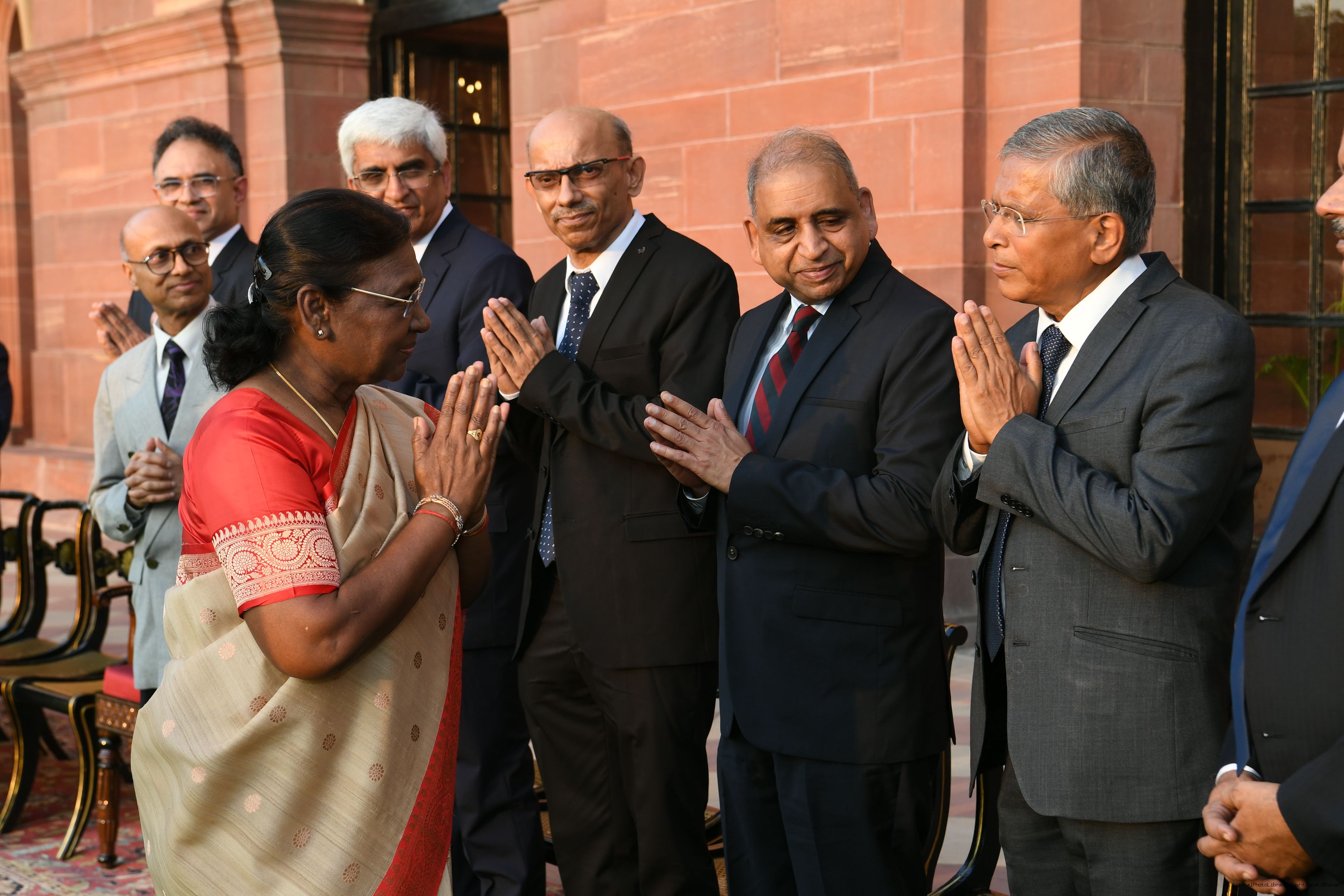 The President mets and posing a group photograph with Shri B.G. Mallya GM Integral Coach Factory Perambur and others on 23-9-2023