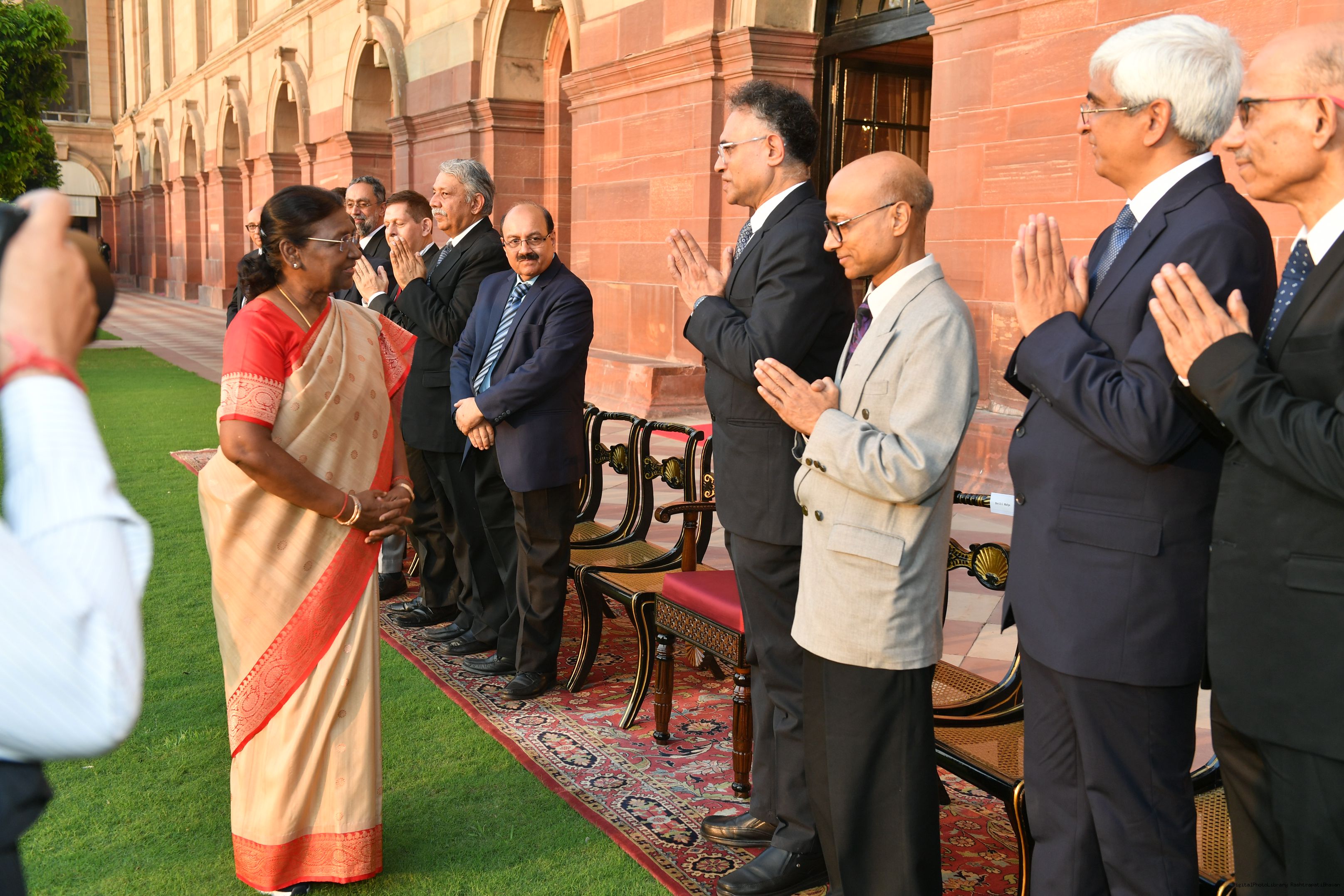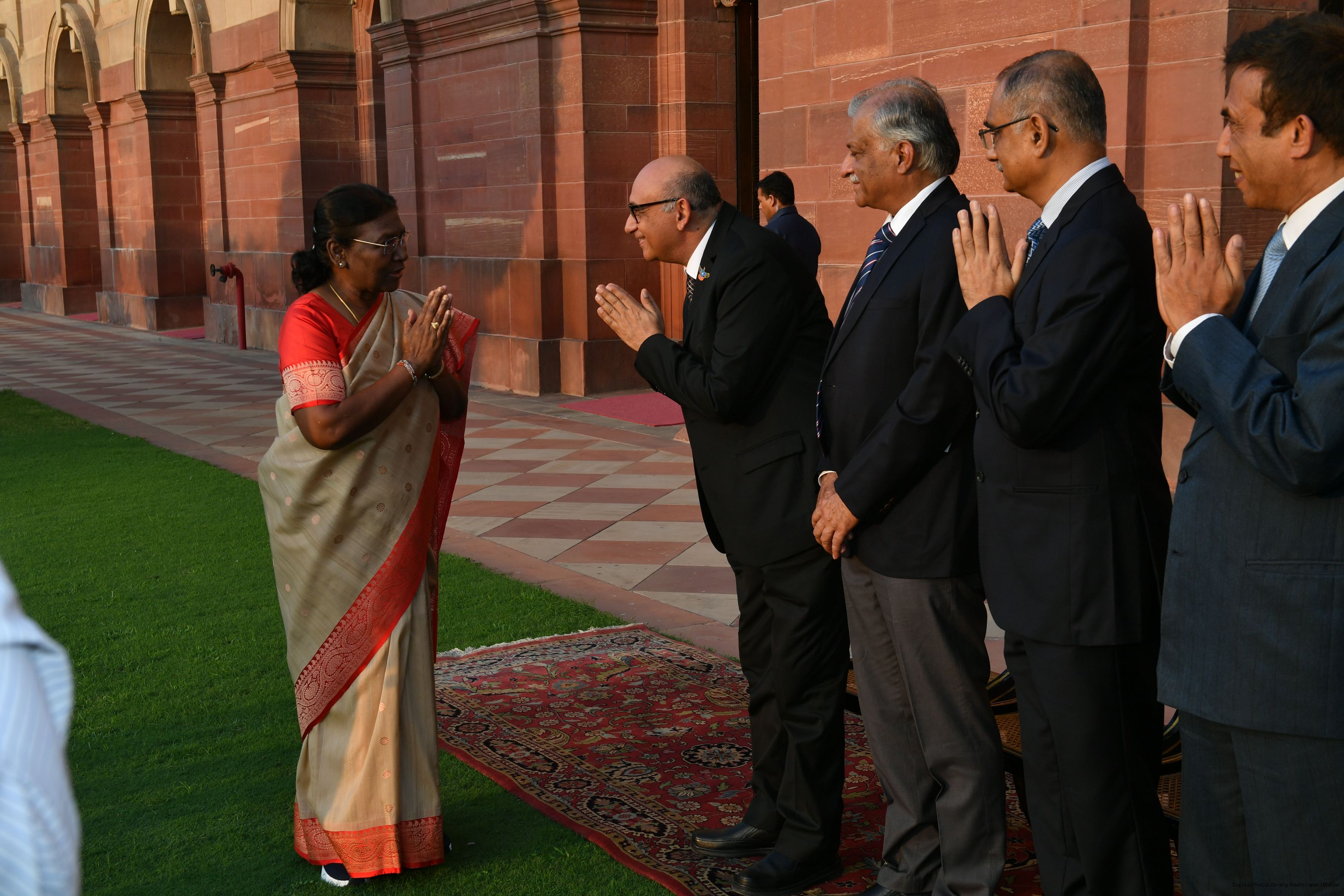 The President mets and posing a group photograph with Shri B.G. Mallya GM Integral Coach Factory Perambur and others on 23-9-2023