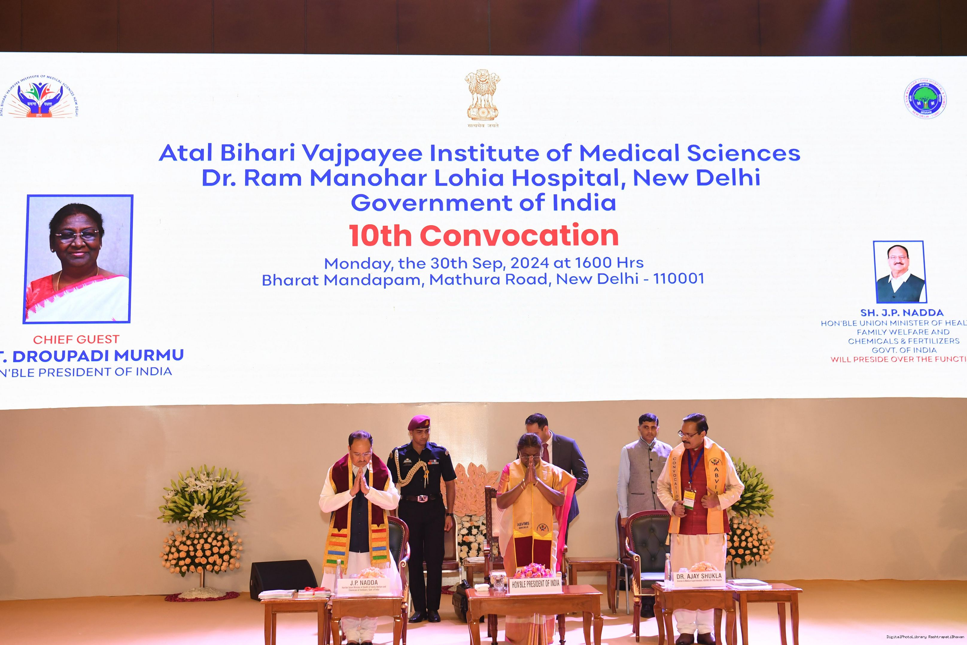 The President graced the 10th convocation of Atal Bihari Vajpayee Institute of Medical Sciences and Dr Ram Manohar Lohia Hospital 30-09-2024.