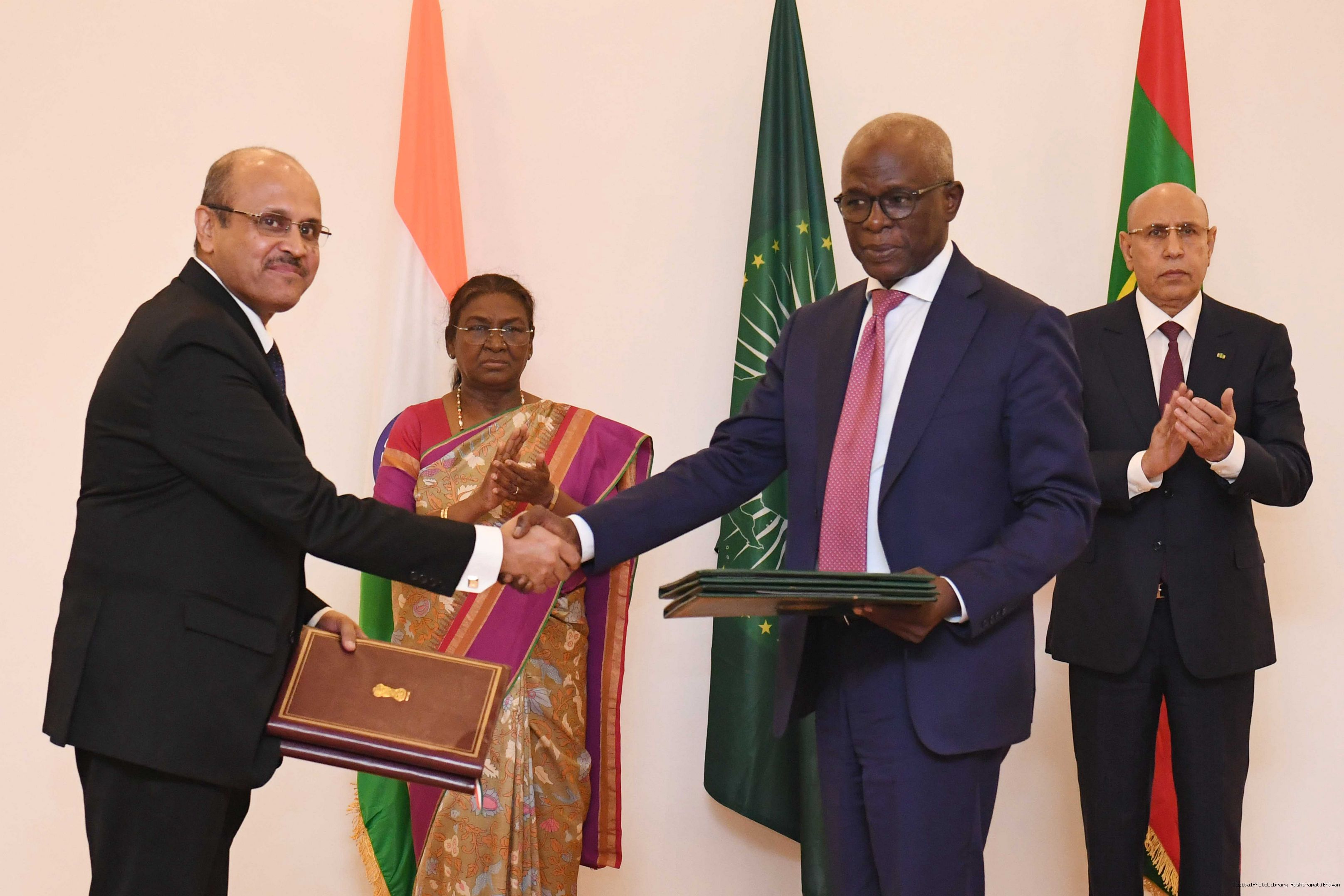 The President of India, Smt Droupadi Murmu Exchange of MOUs at Presidential Palace, Mauritania on October 16, 2024.