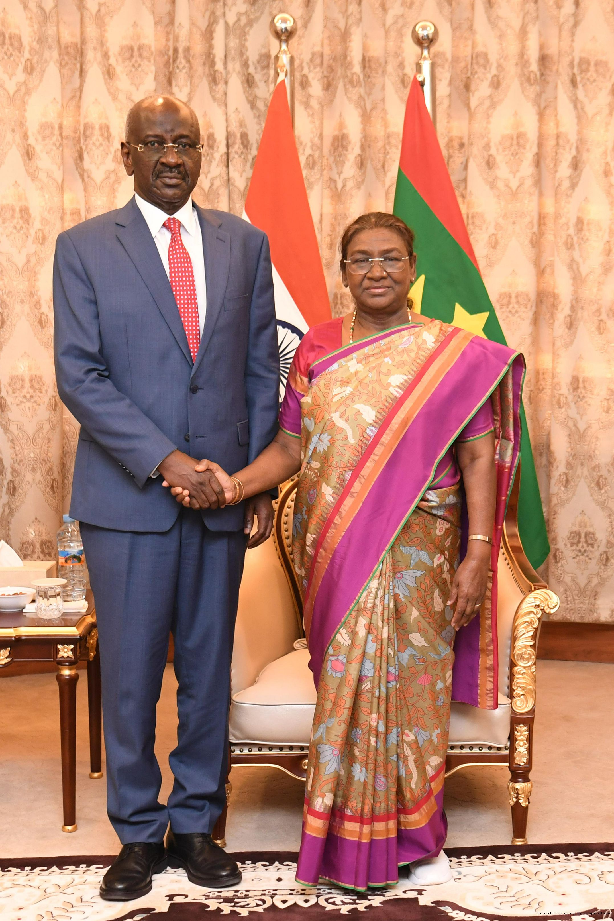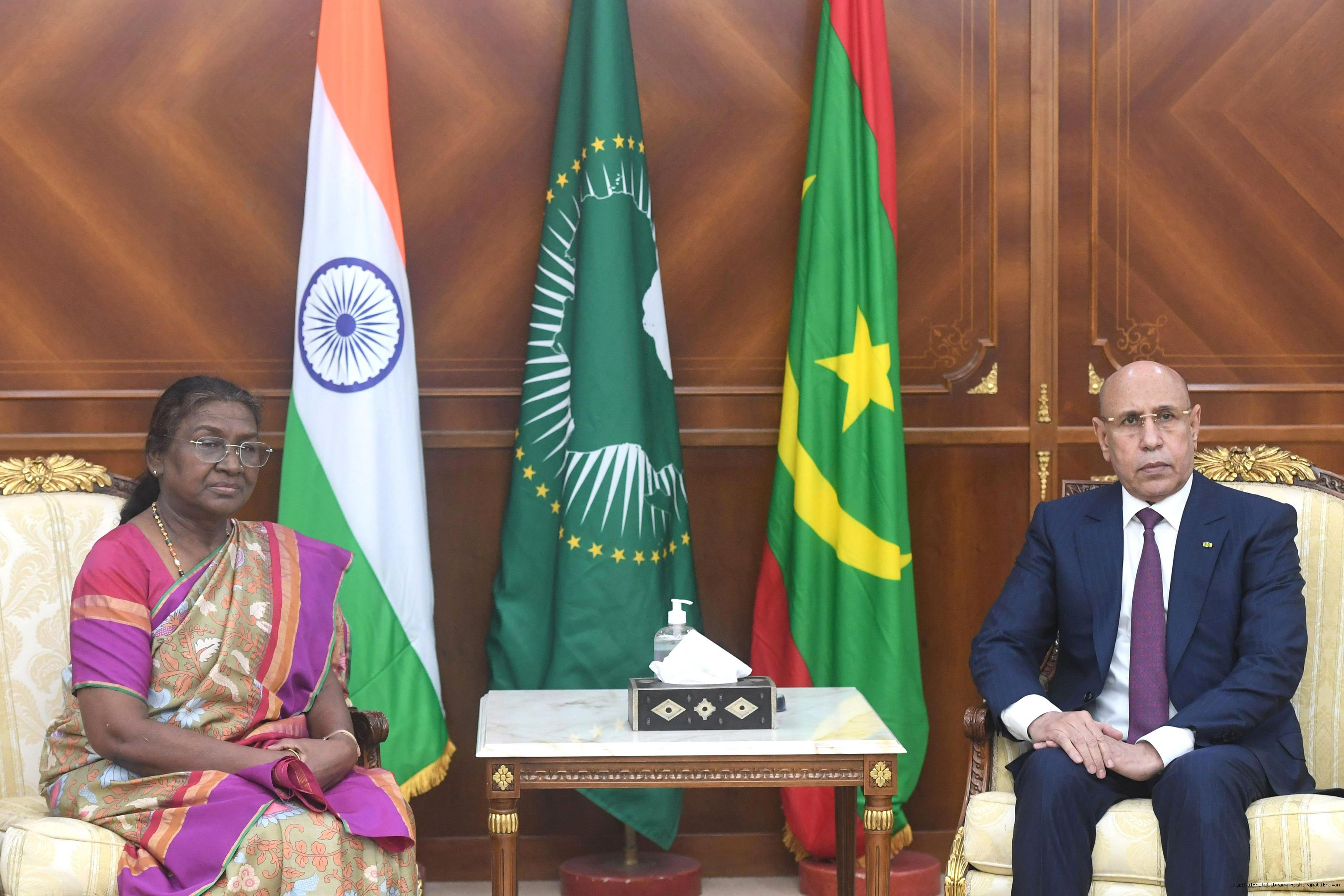 The President of India Smt. Droupadi Murmu met and held talks with President Mohamed Ould Ghazouani of Mauritania at the Presidential Palace at Nouakchott Mauritania on October 16, 2024.
