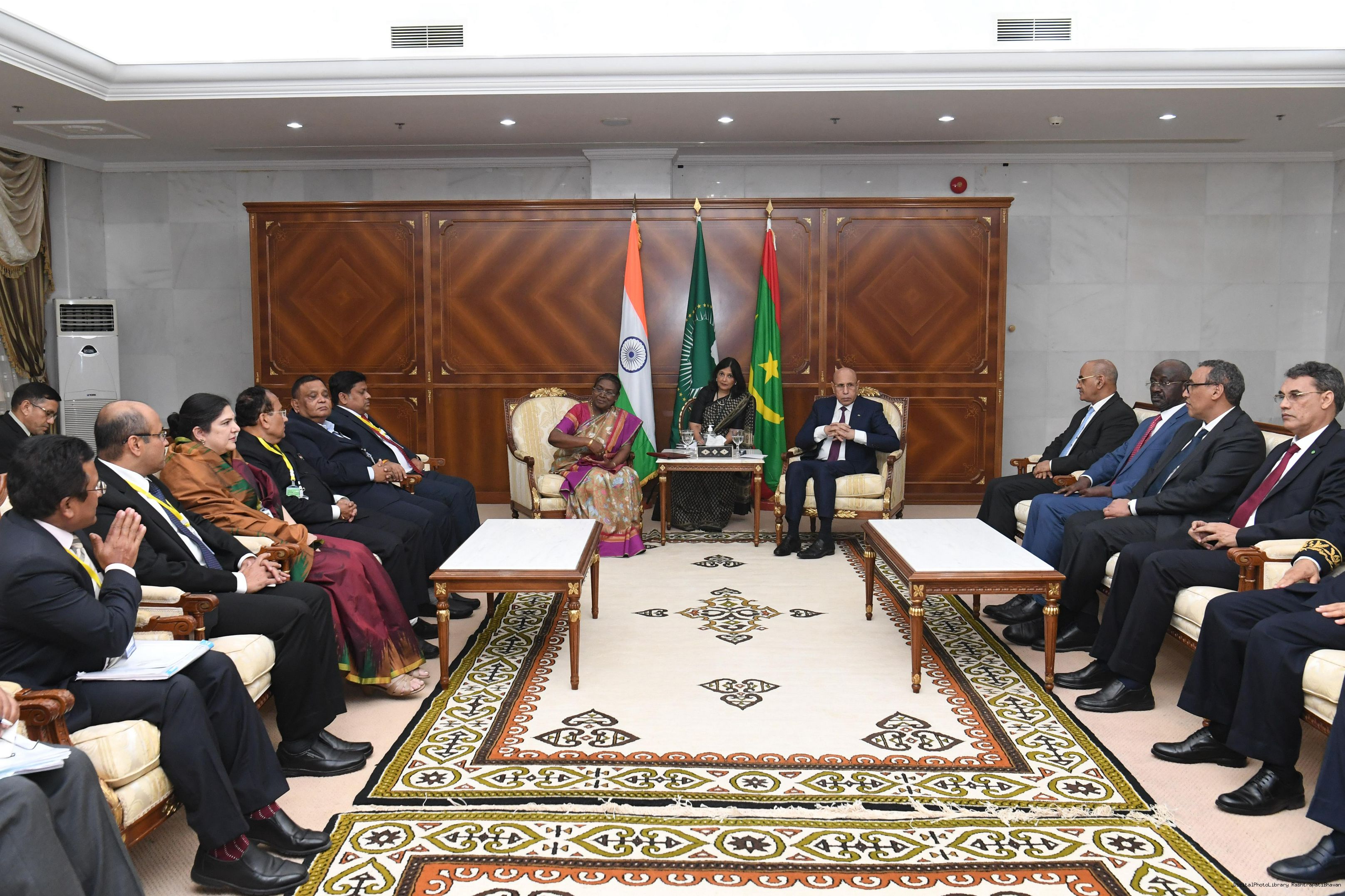 The President of India Smt. Draupadi Murmu led the delegation level talks 05. Delegation Level Talks at Presidential Palace, Mauritania on October 16, 2024.