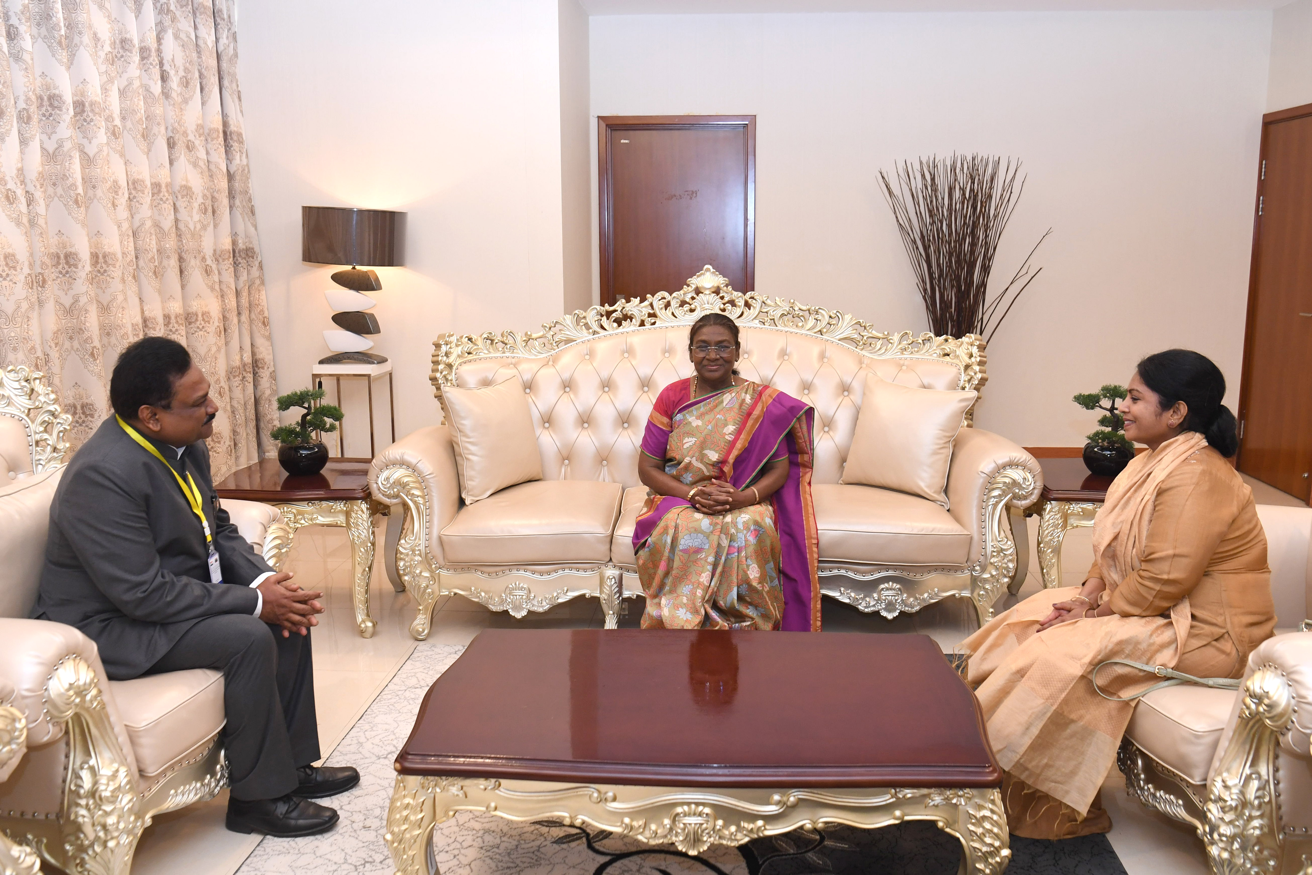 The President of India Smt. Droupadi Murmu Exchanged of Gifts with Indian Ambassador at State Guest House, Mauritania on October 16, 2024.