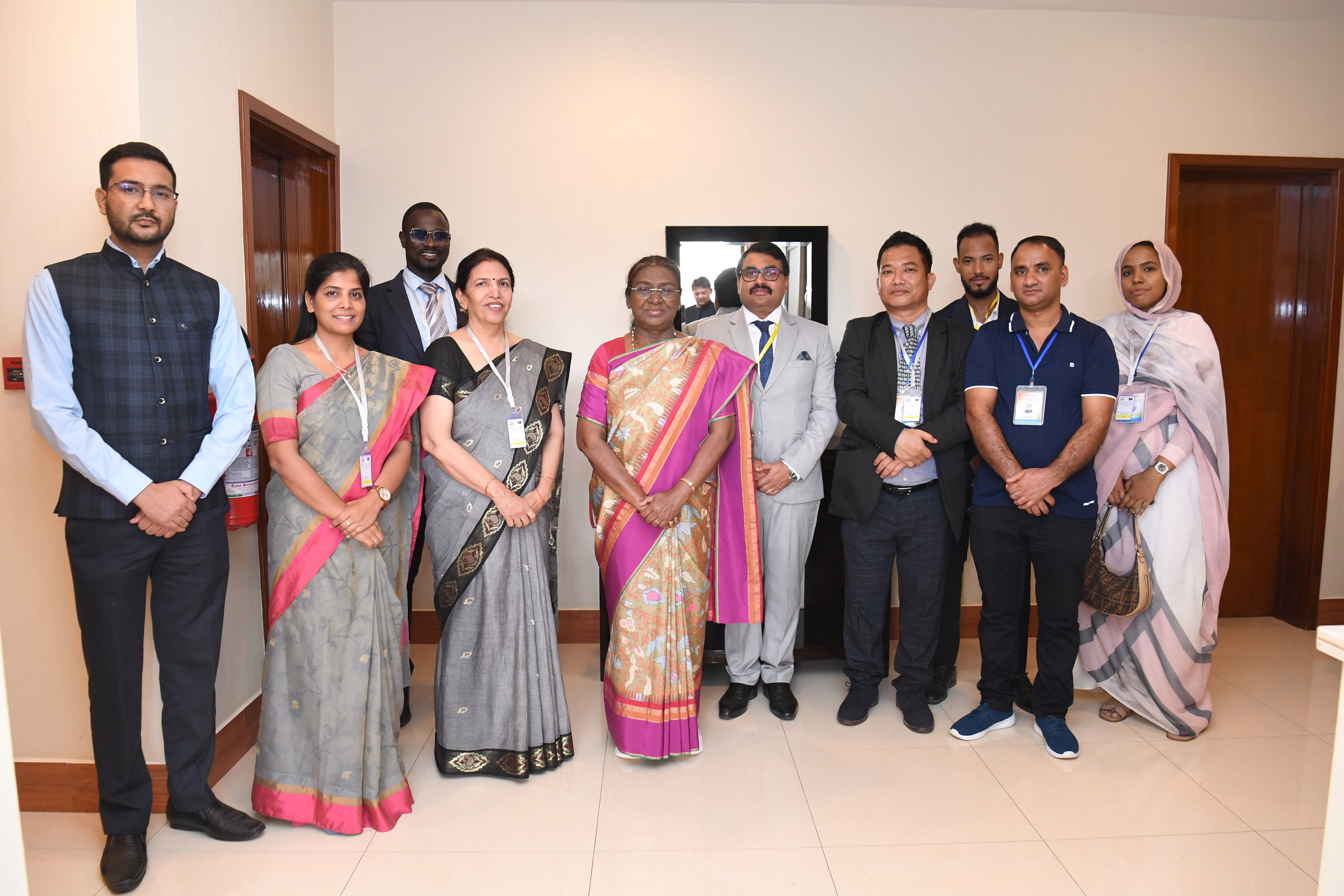 The President of India Smt. Droupadi Murmu posing a group photographs with Community Event at Hotel Fasq Mauritania on October 16, 2024.