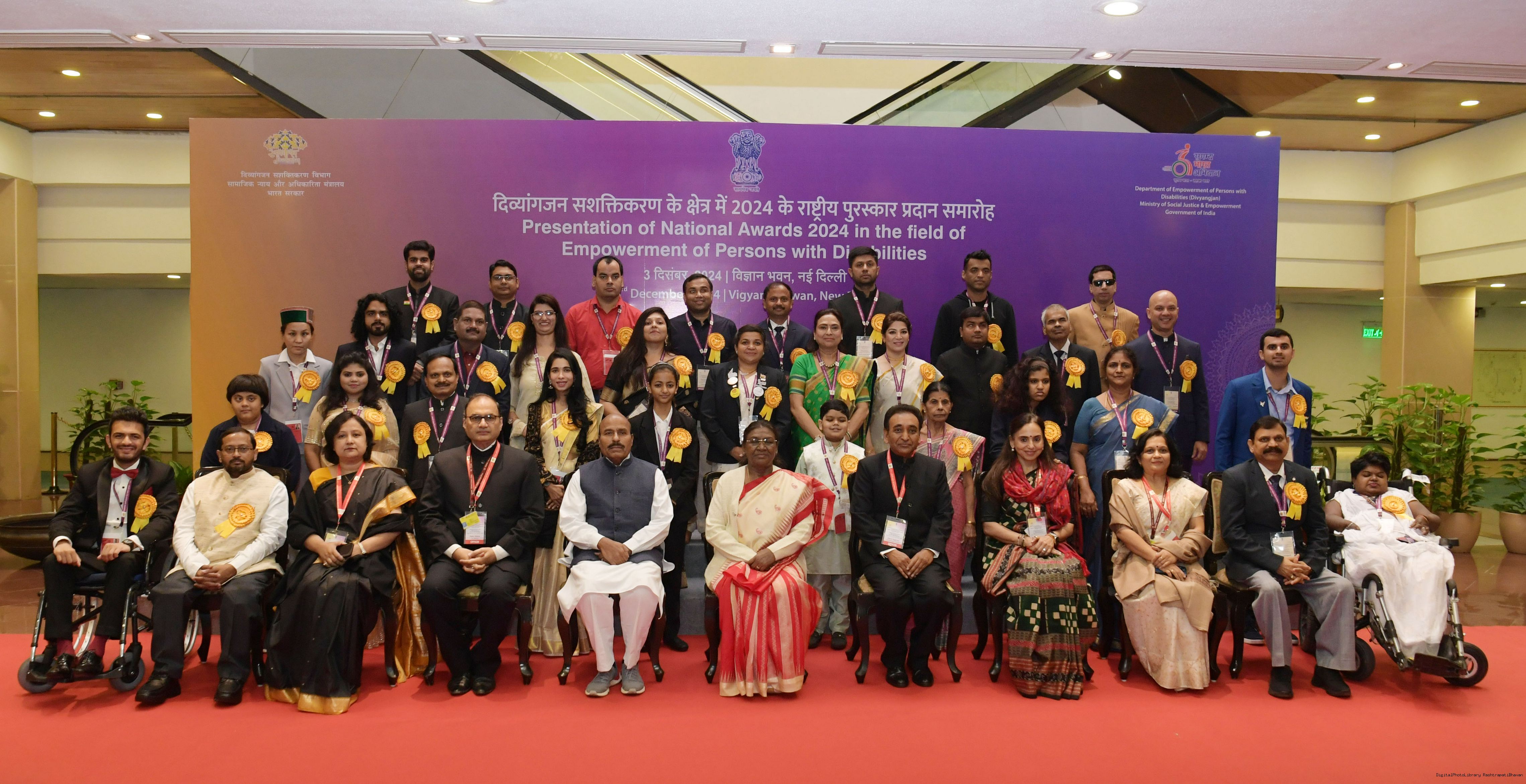 The President of India, Smt Droupadi Murmu presented the National Awards for the Empowerment of Persons with Disabilities for the year 2024 in New Delhi on December 3, 2024 on the occasion of the International Day of Persons with Disabilities.