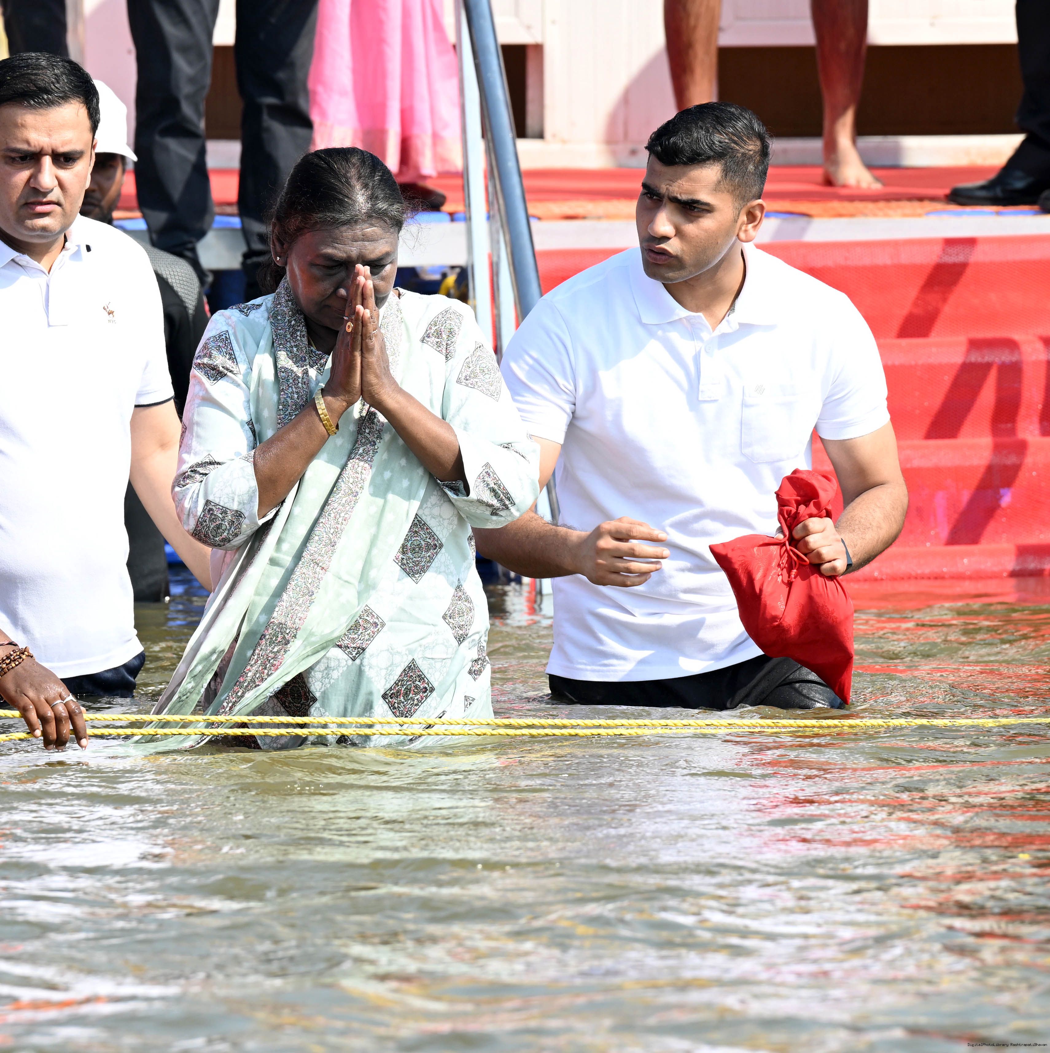 The President of India, Smt. Droupadi Murmu took holy dip and offered prayers at Sangam Prayagraj on February 10, 2025.