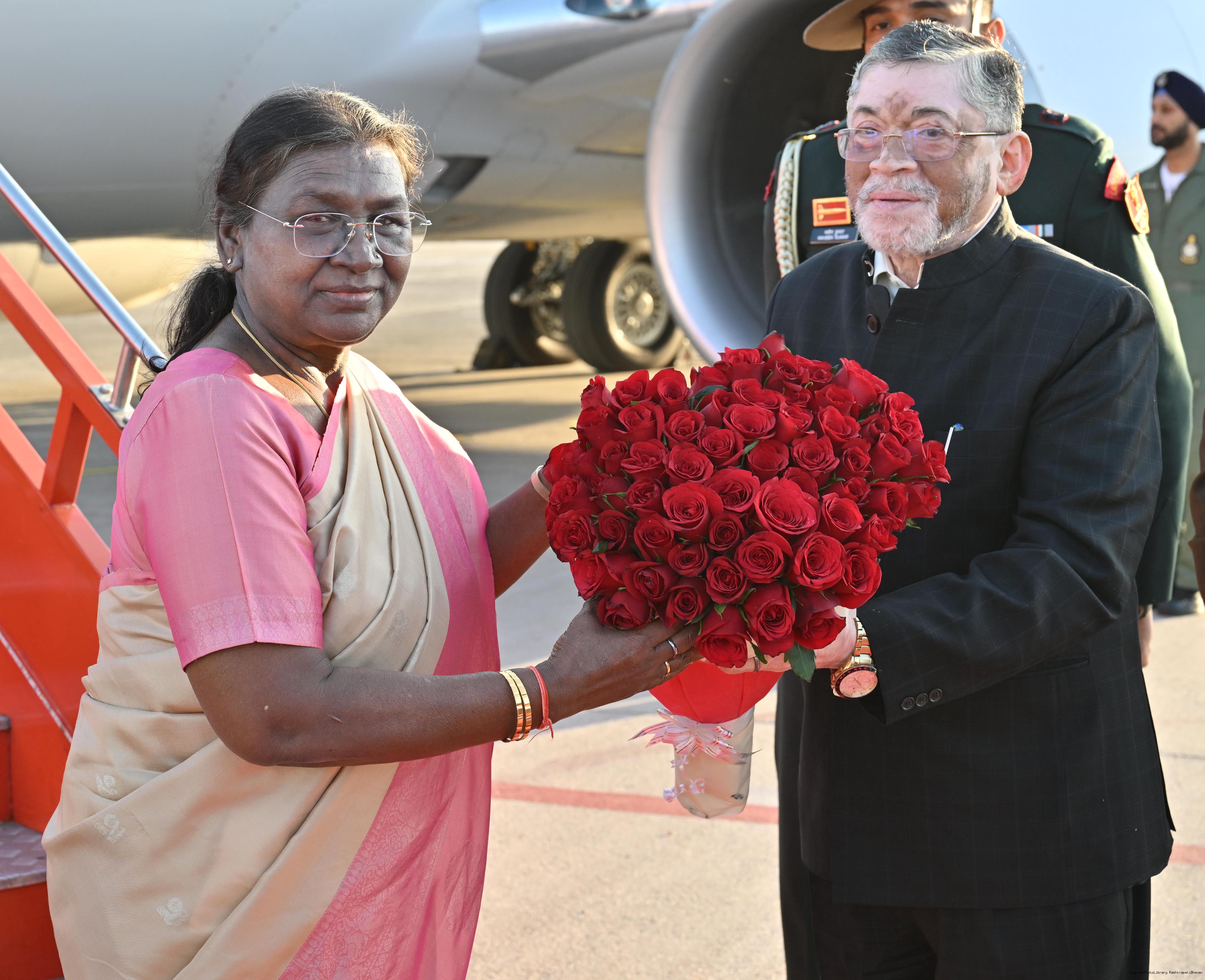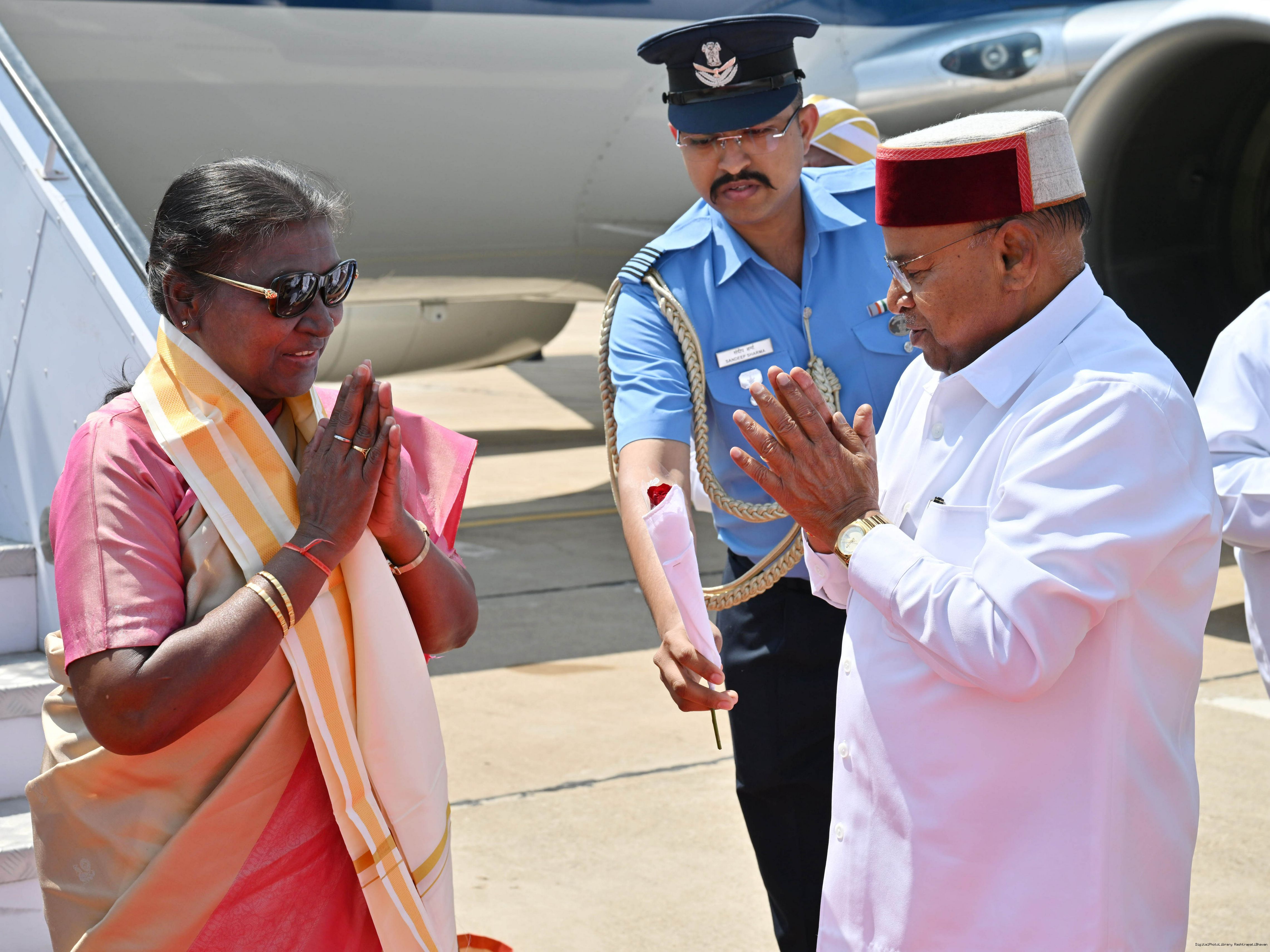 The Governor of Jharkhand, Shri Santosh Kumar Gangwar received the President of India, Smt. Droupadi Murmu on her arrival in Ranchi on February 14, 2025.