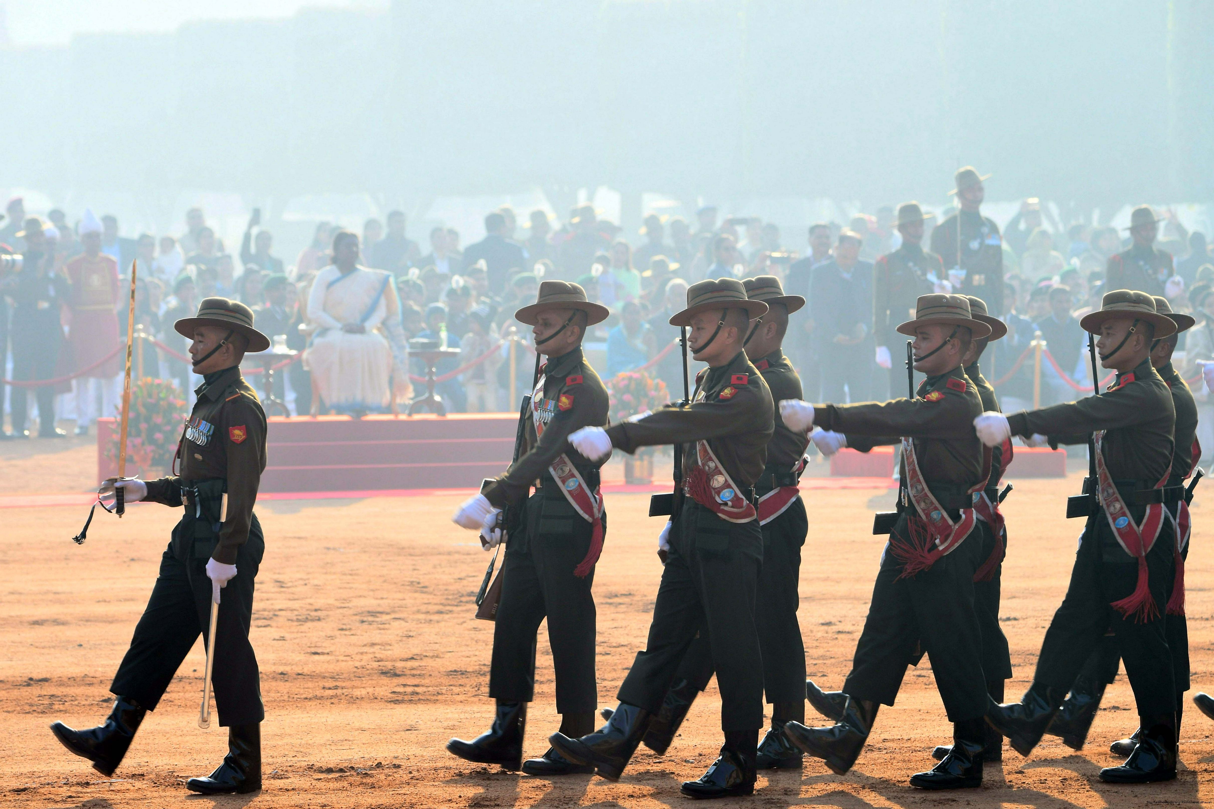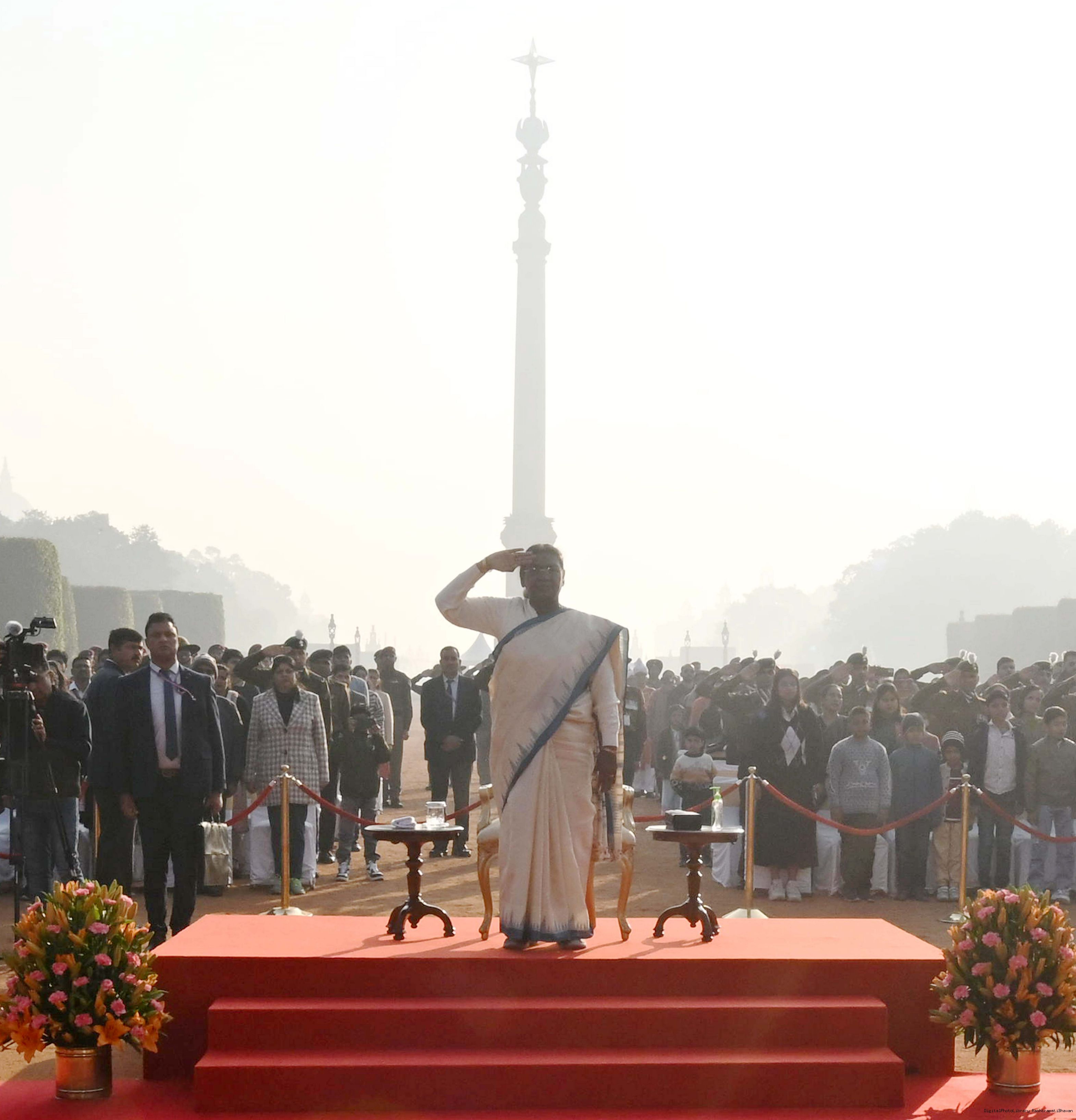 The President of India, Smt Droupadi Murmu witnessed the inaugural show of Change of Guard Ceremony in new format this morning at the Forecourt of Rashtrapati Bhavan on February 16, 2025. Vol-IV