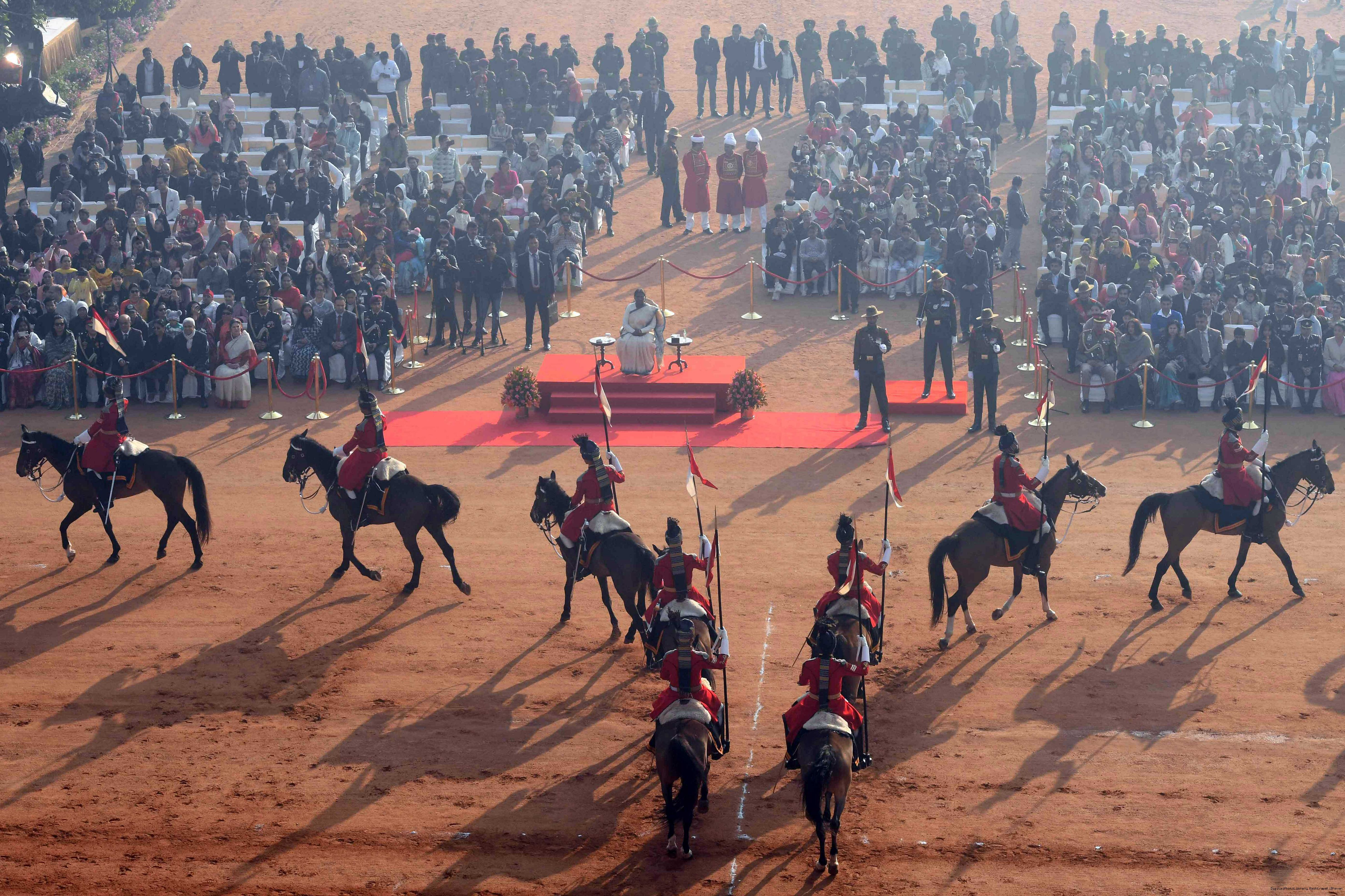 The President of India, Smt Droupadi Murmu witnessed the inaugural show of Change of Guard Ceremony in new format this morning at the Forecourt of Rashtrapati Bhavan on February 16, 2025. Vol-V