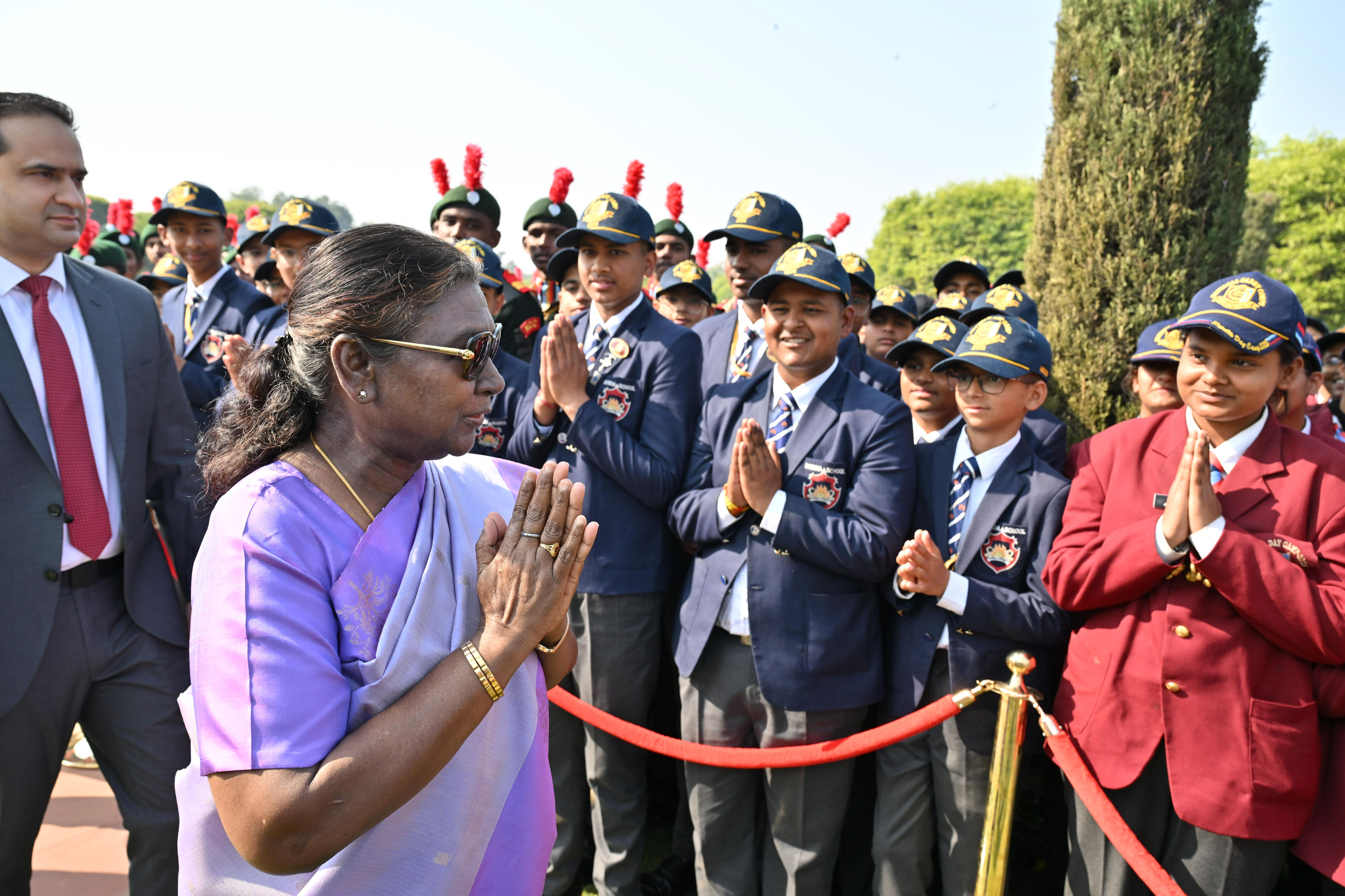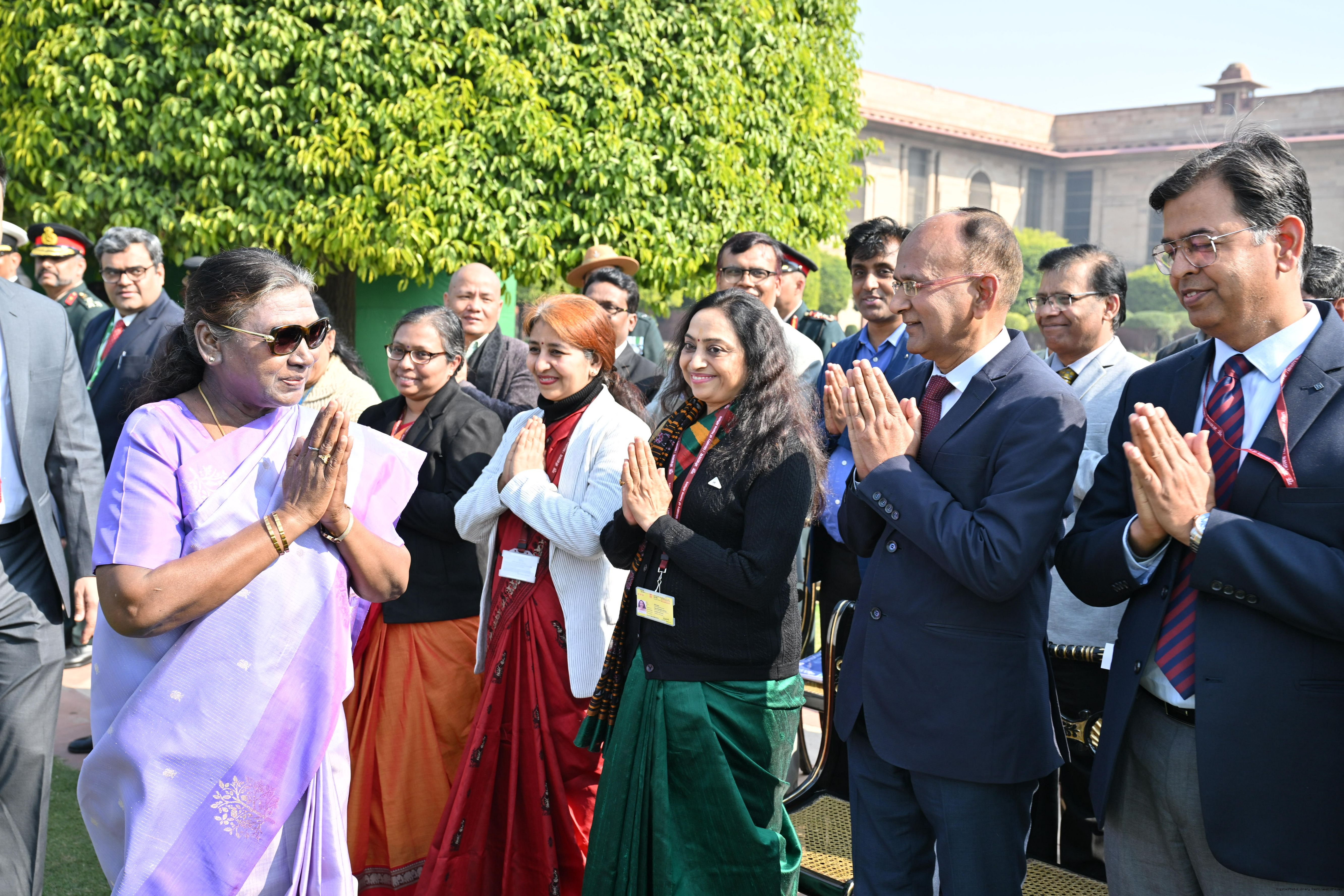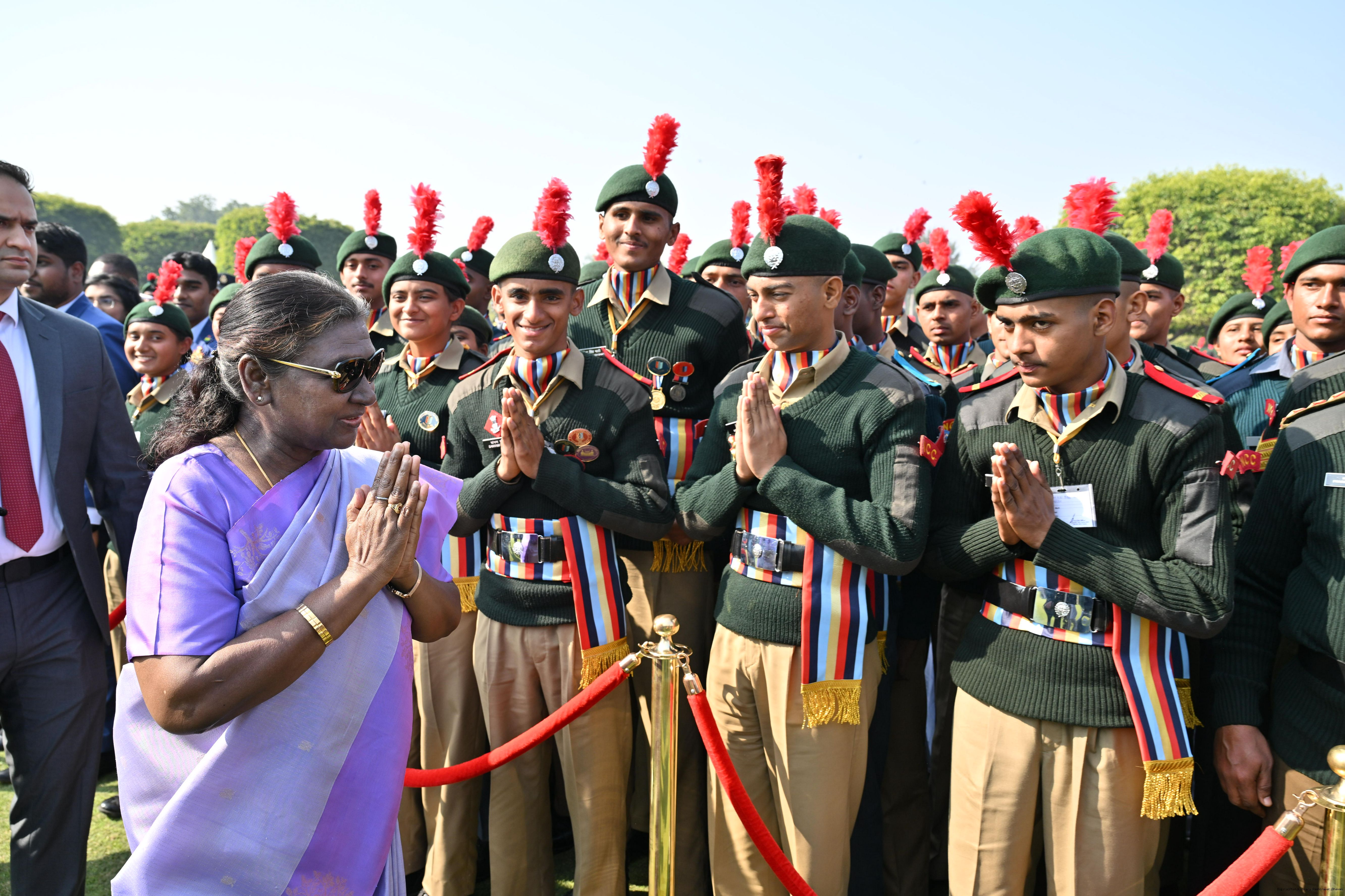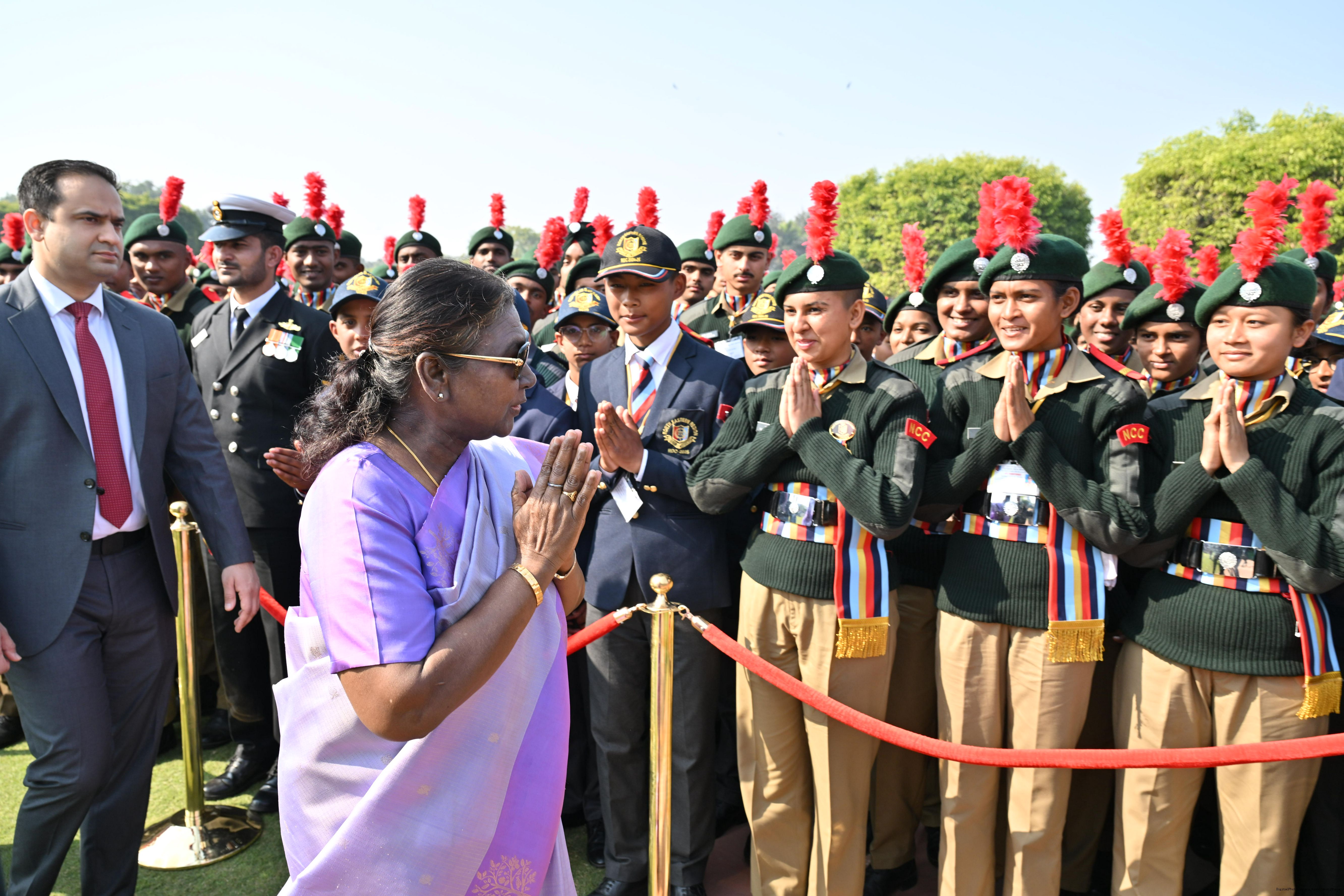 The President met and posing a group photographs tribal guests, tableaux artistes and tractor drivers, NSS volunteers and NCC cadets, officials 28-01-2025