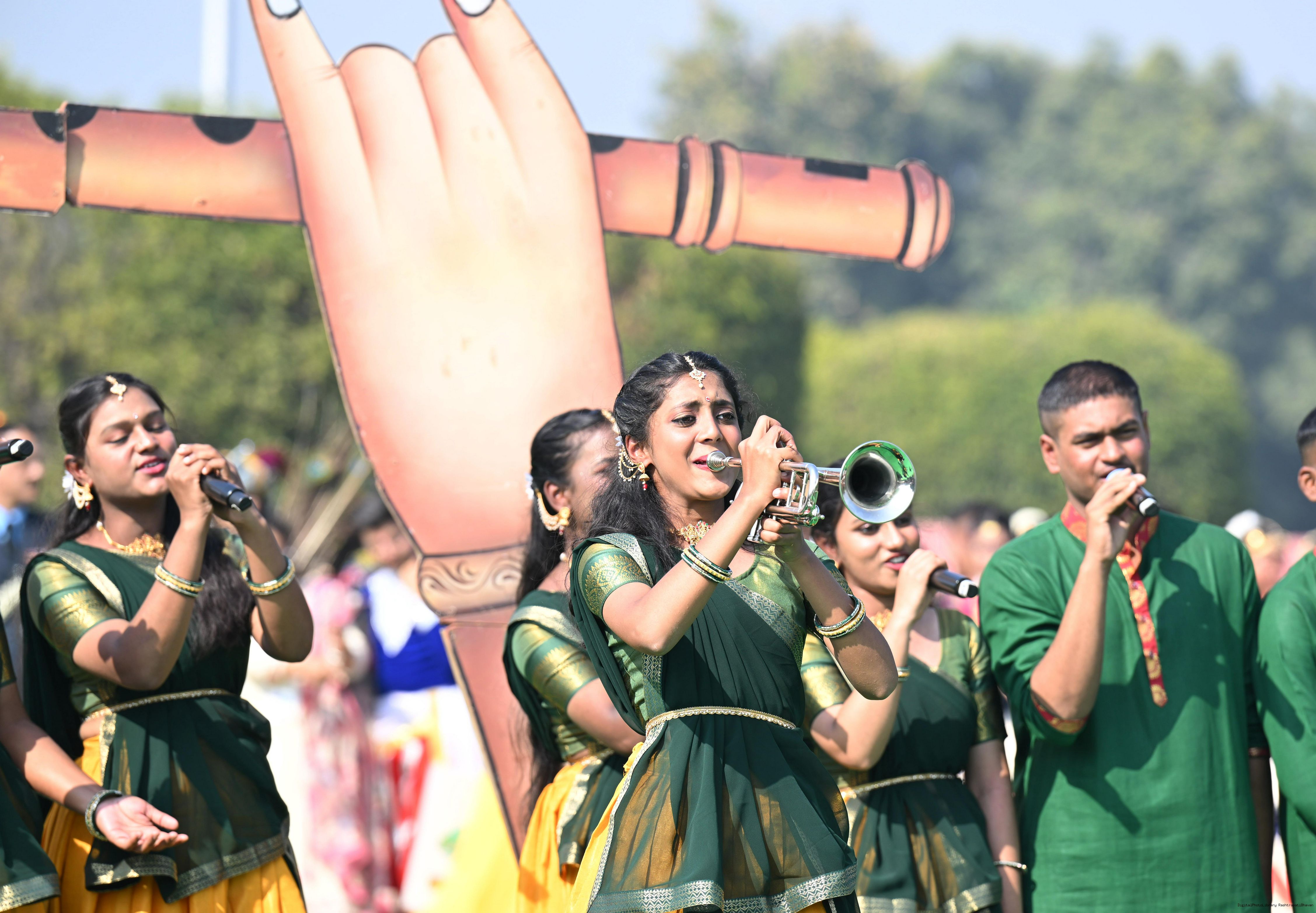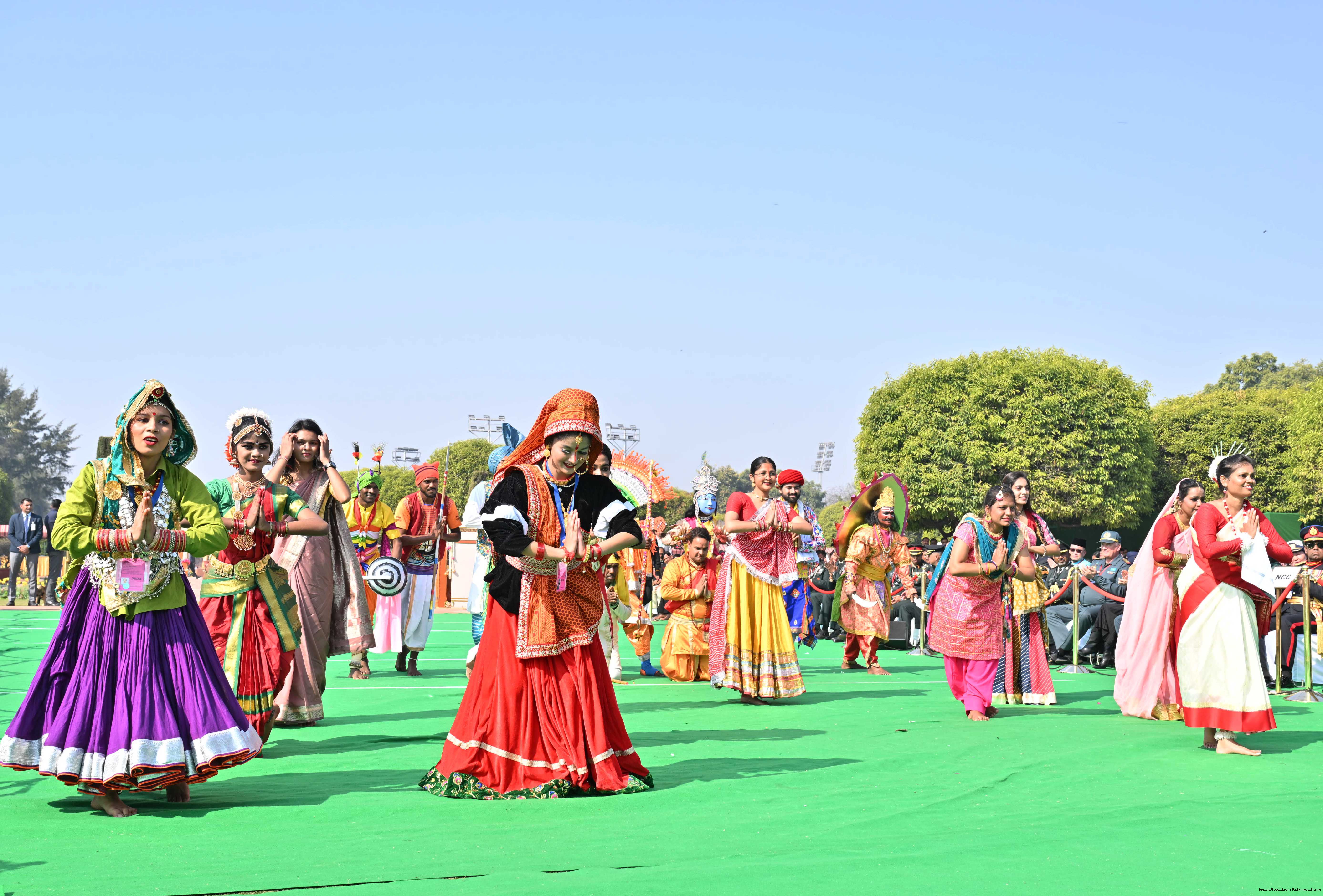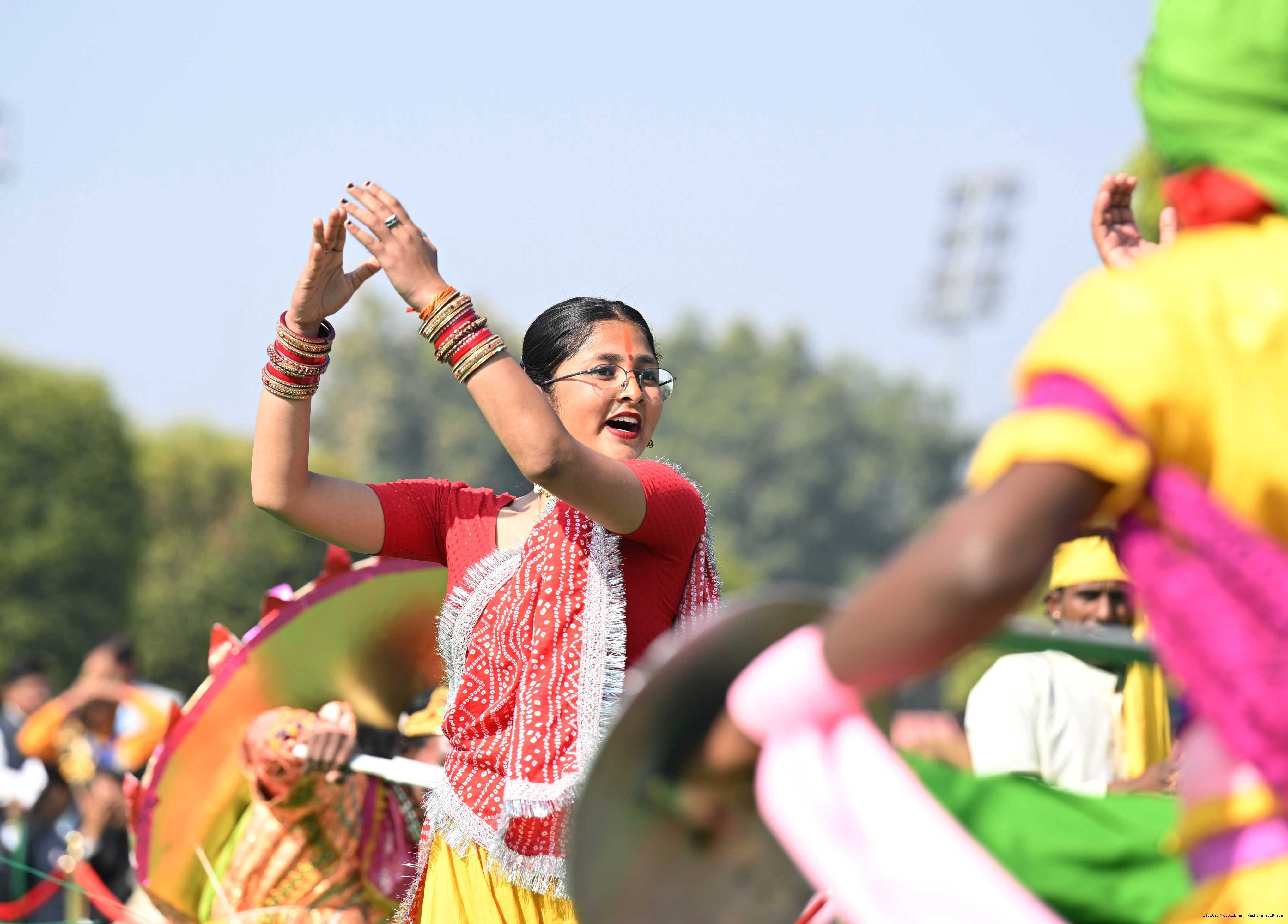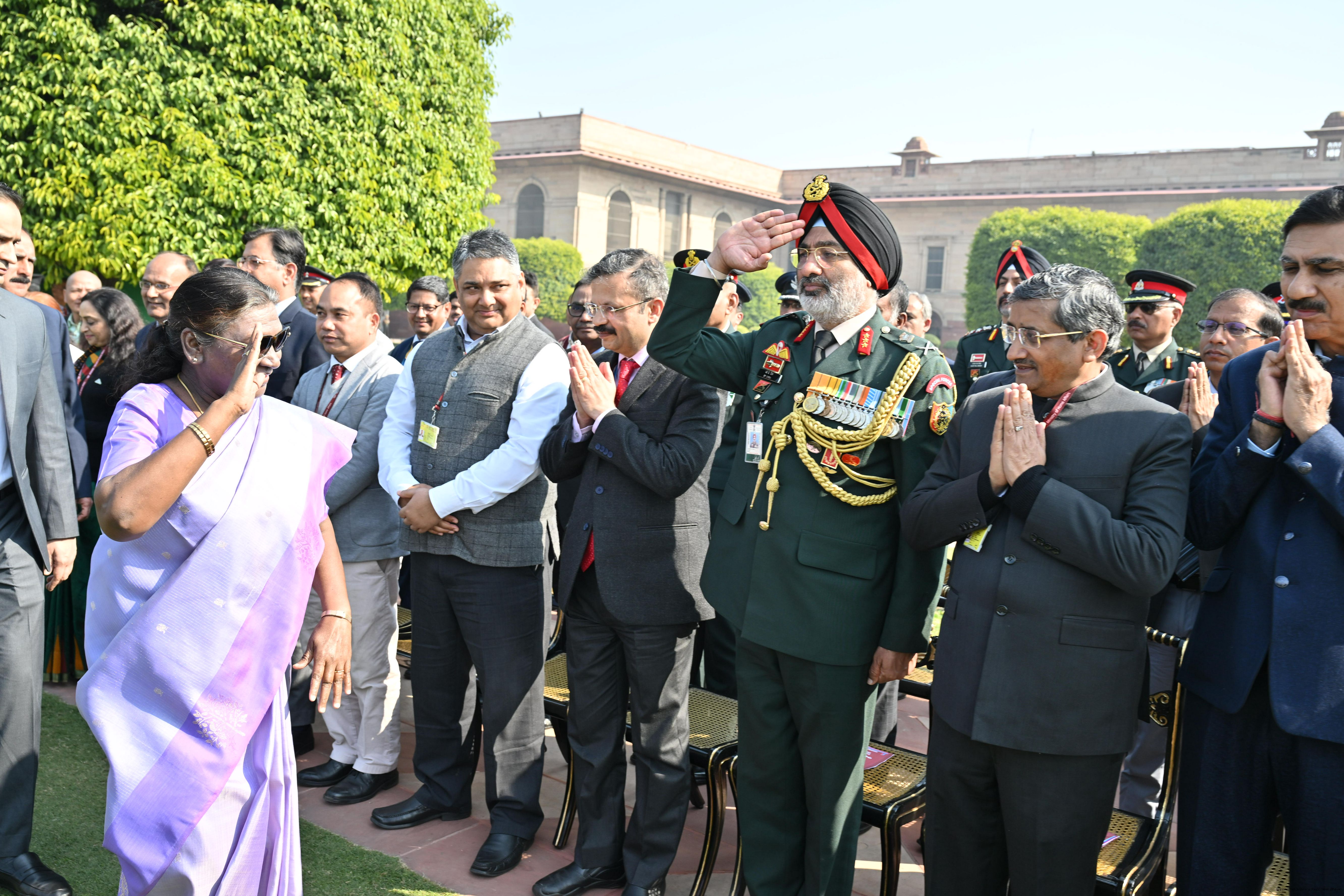 The President met and posing a group photographs tribal guests, tableaux artistes and tractor drivers, NSS volunteers and NCC cadets, officials 28-01-2025