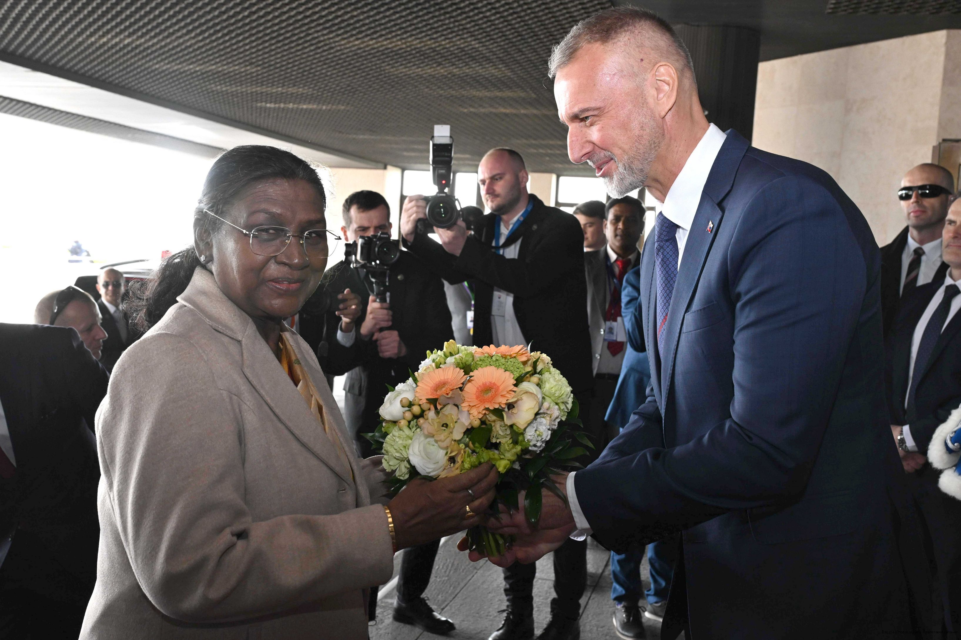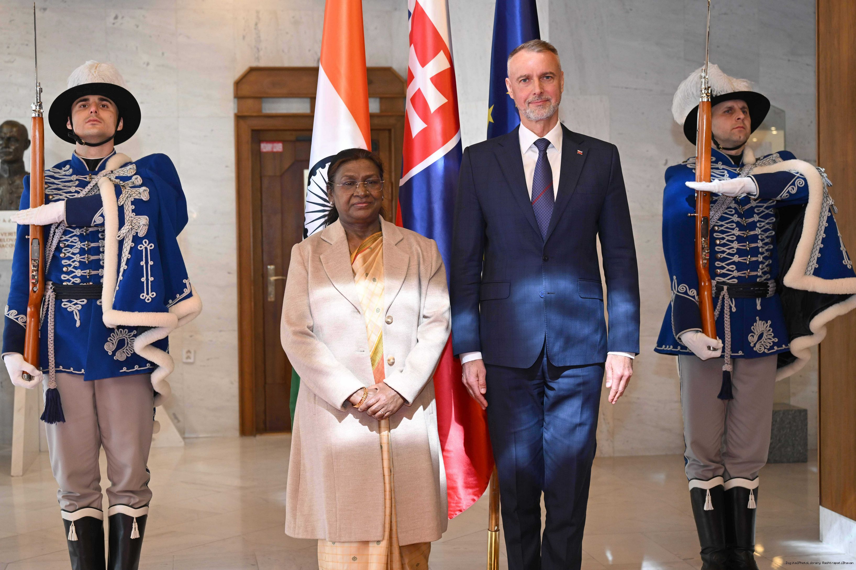 The President of India, Smt. Droupadi Murmu was received by President Peter Pellegrini of the Slovak Republic at the Presidential Palace in Bratislava, Slovak on April 9, 2025. Vol-I