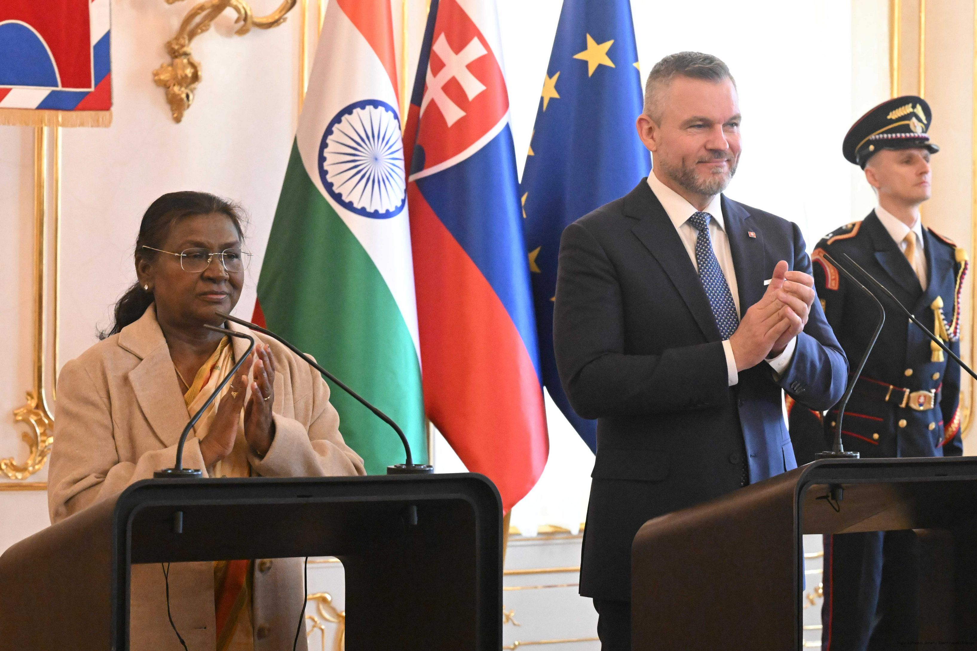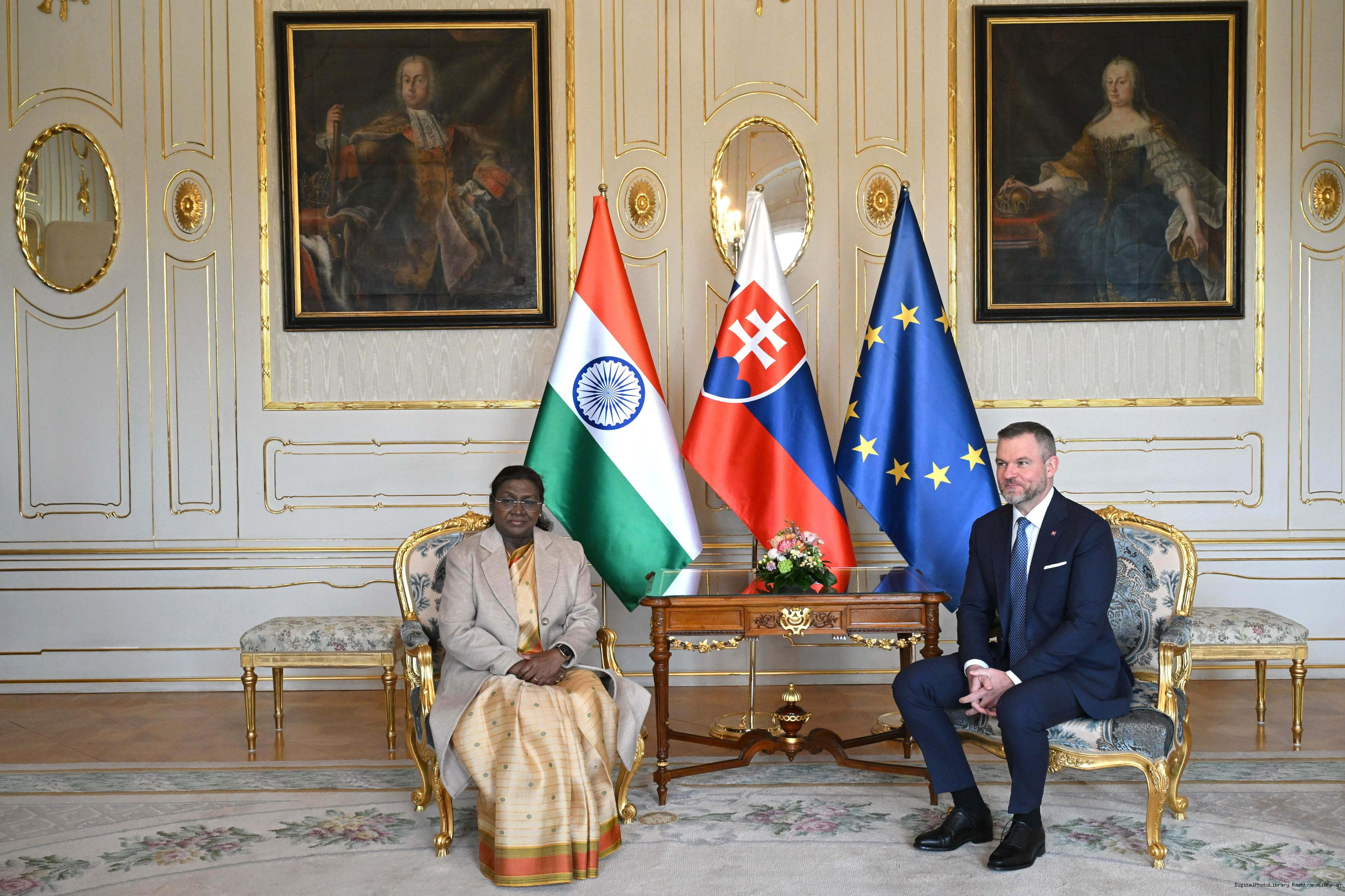 The President of India, Droupadi Murmu met the President Peter Pellegrini of the Slovak Republic at the Presidential Palace in Bratislava, Slovak on April 9, 2025.