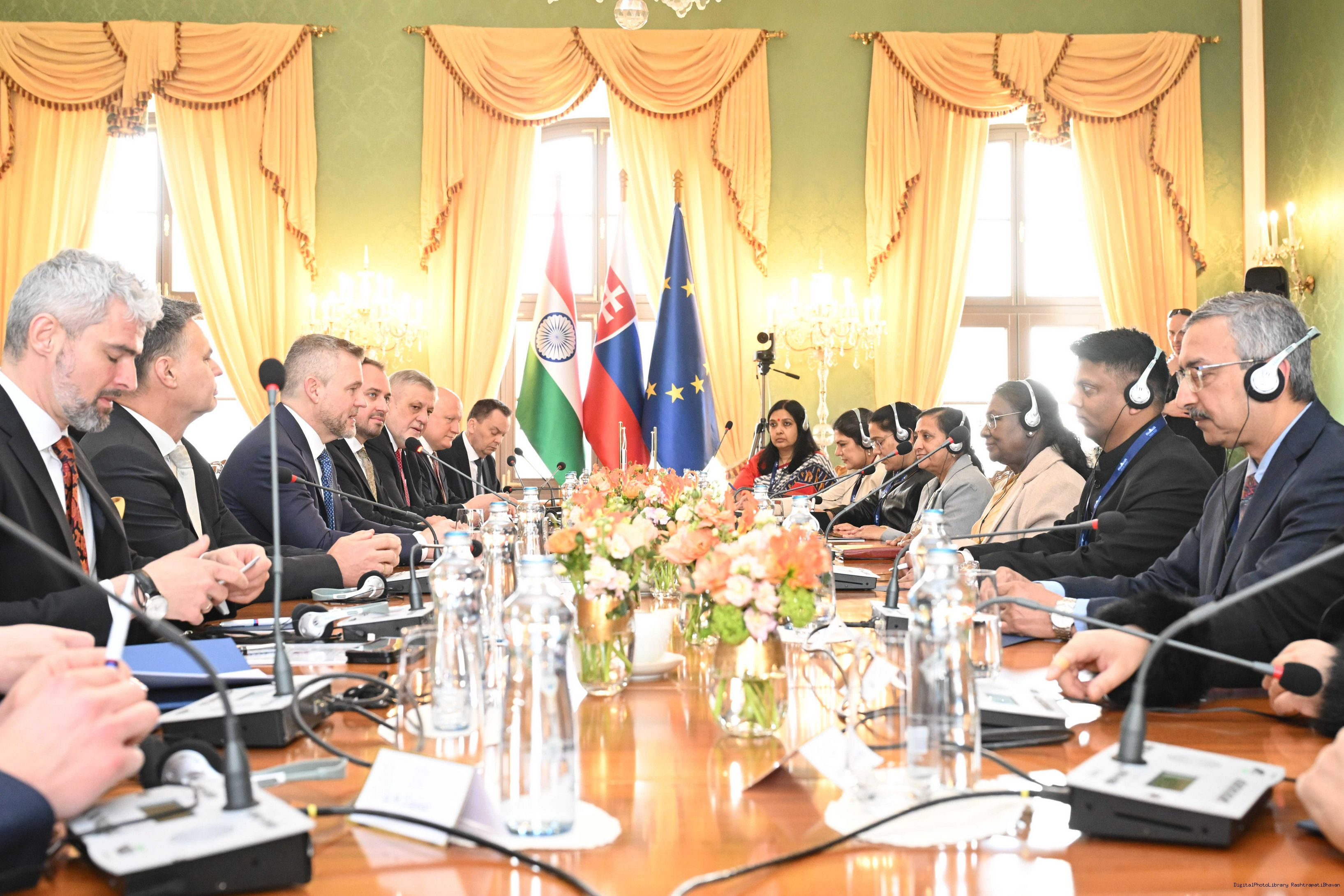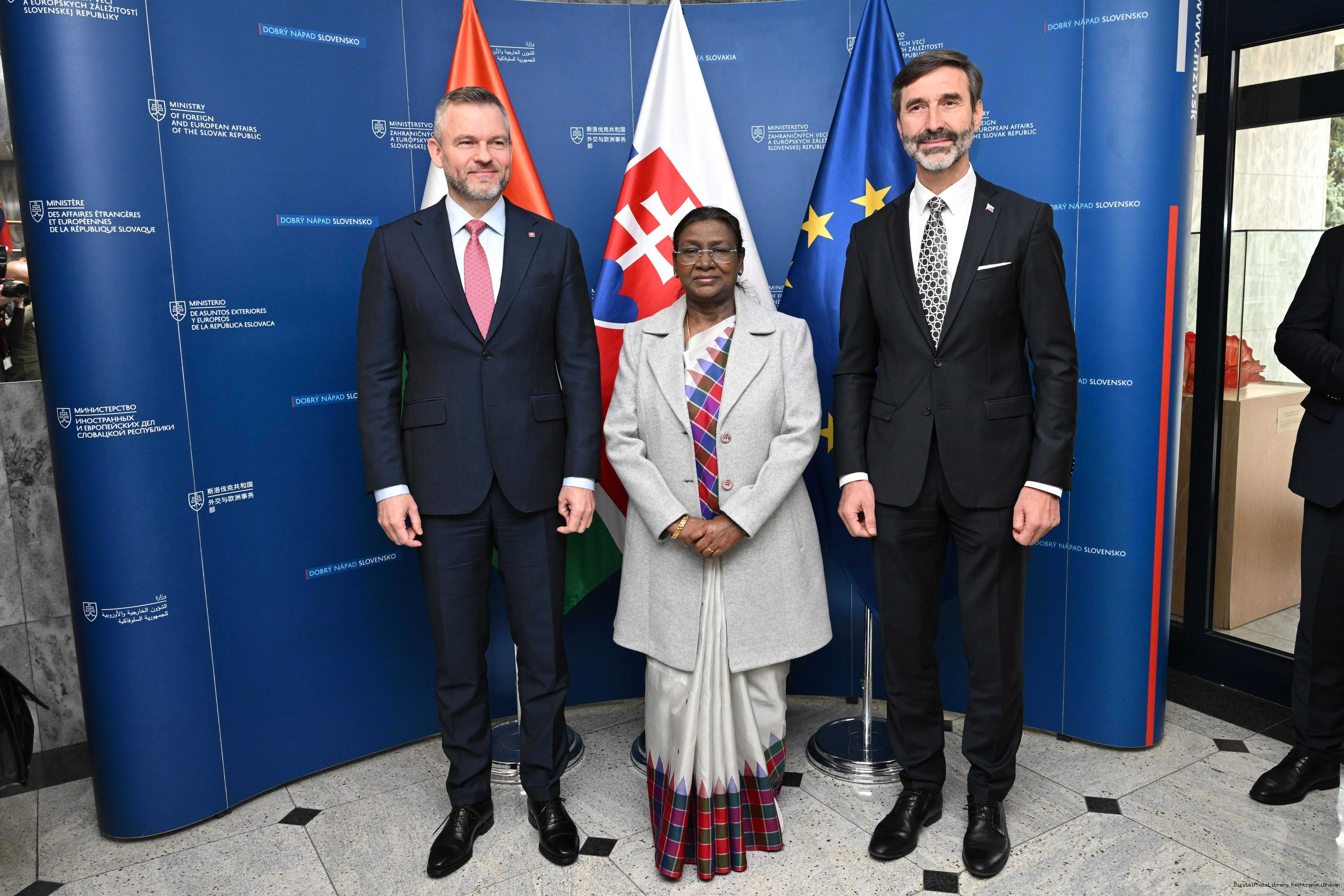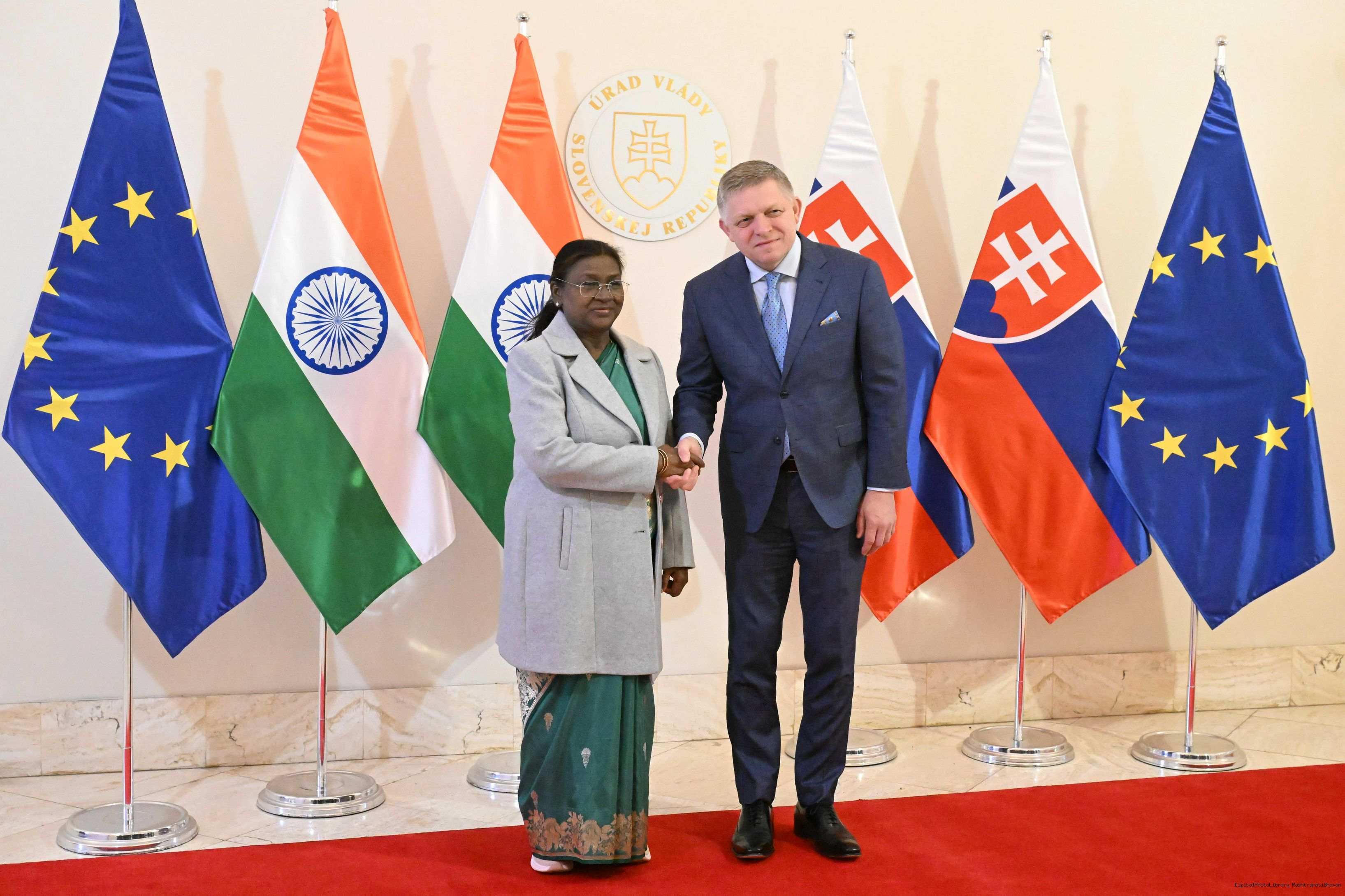 The President of India, Smt. Droupadi Murmu met and held extensive discussions with H.E. Mr. Robert Fico, Prime Minister of the Slovak Republic at Government Office on April 9, 2025.