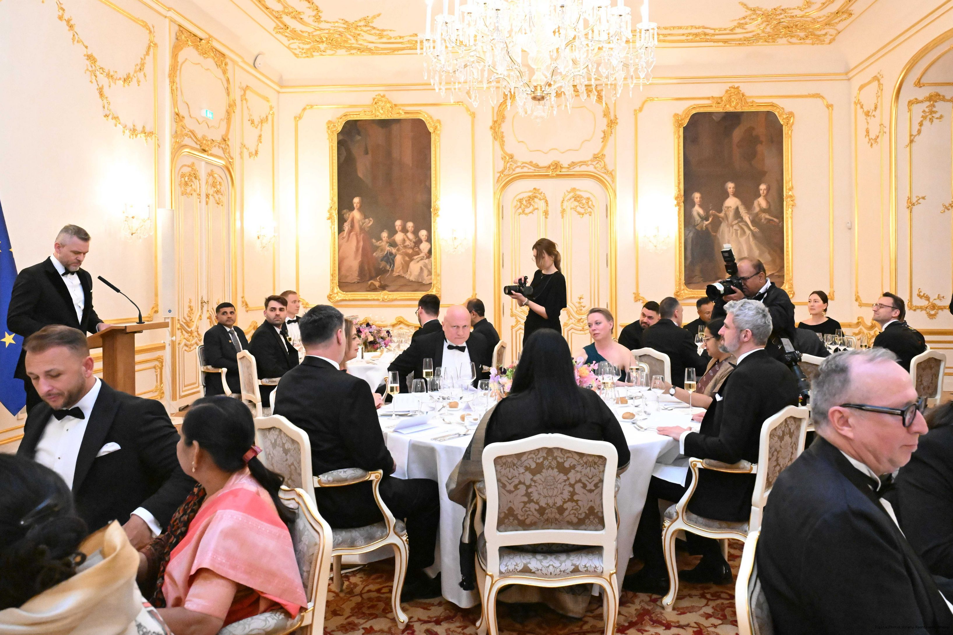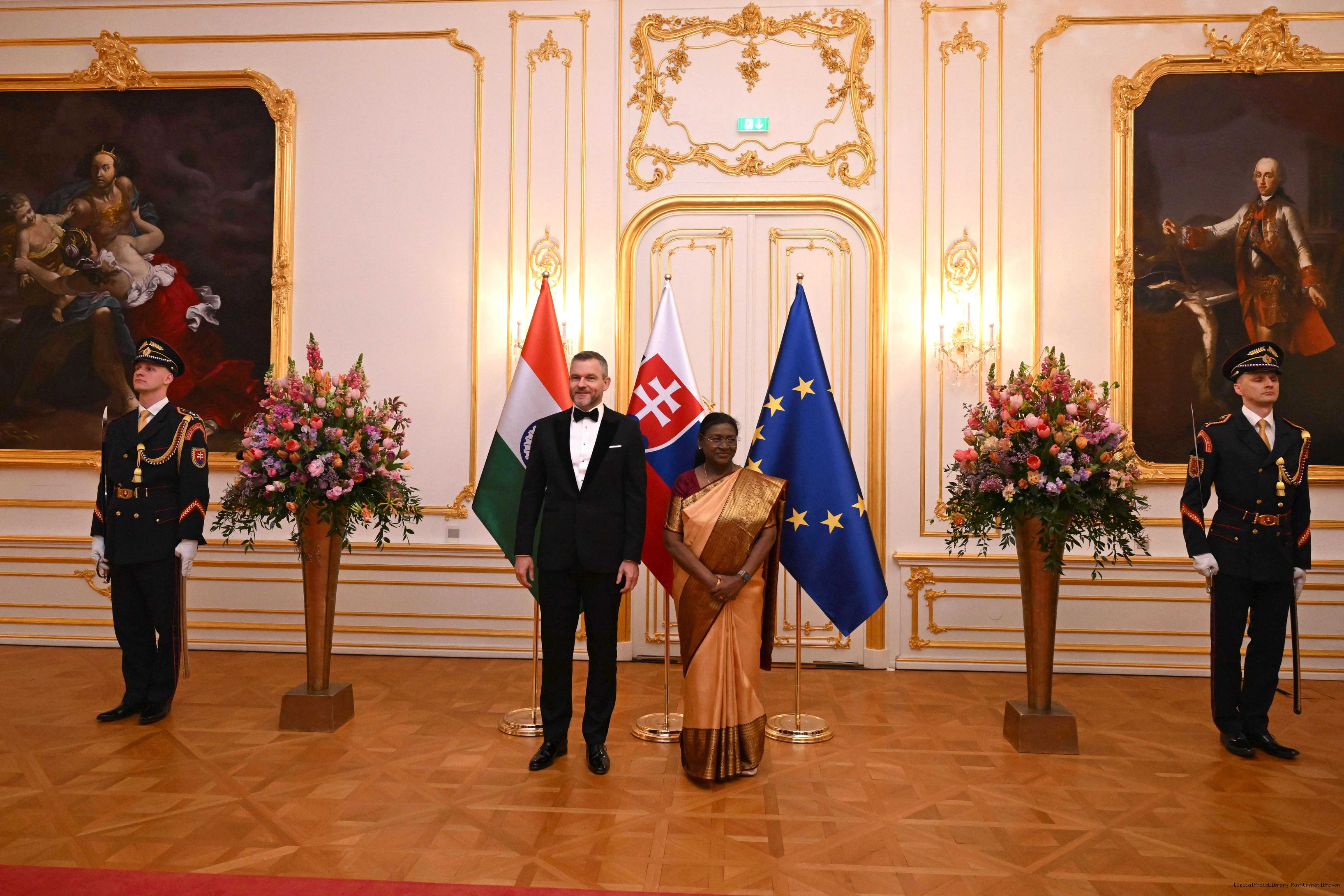 The President of India, Smt. Droupadi Murmu attended a banquet hosted in her honour by H.E. Mr. Peter Pellegrini, President of the Slovak Republic at Bratislava Castle, Slovak on April 9, 2025. Vol-I