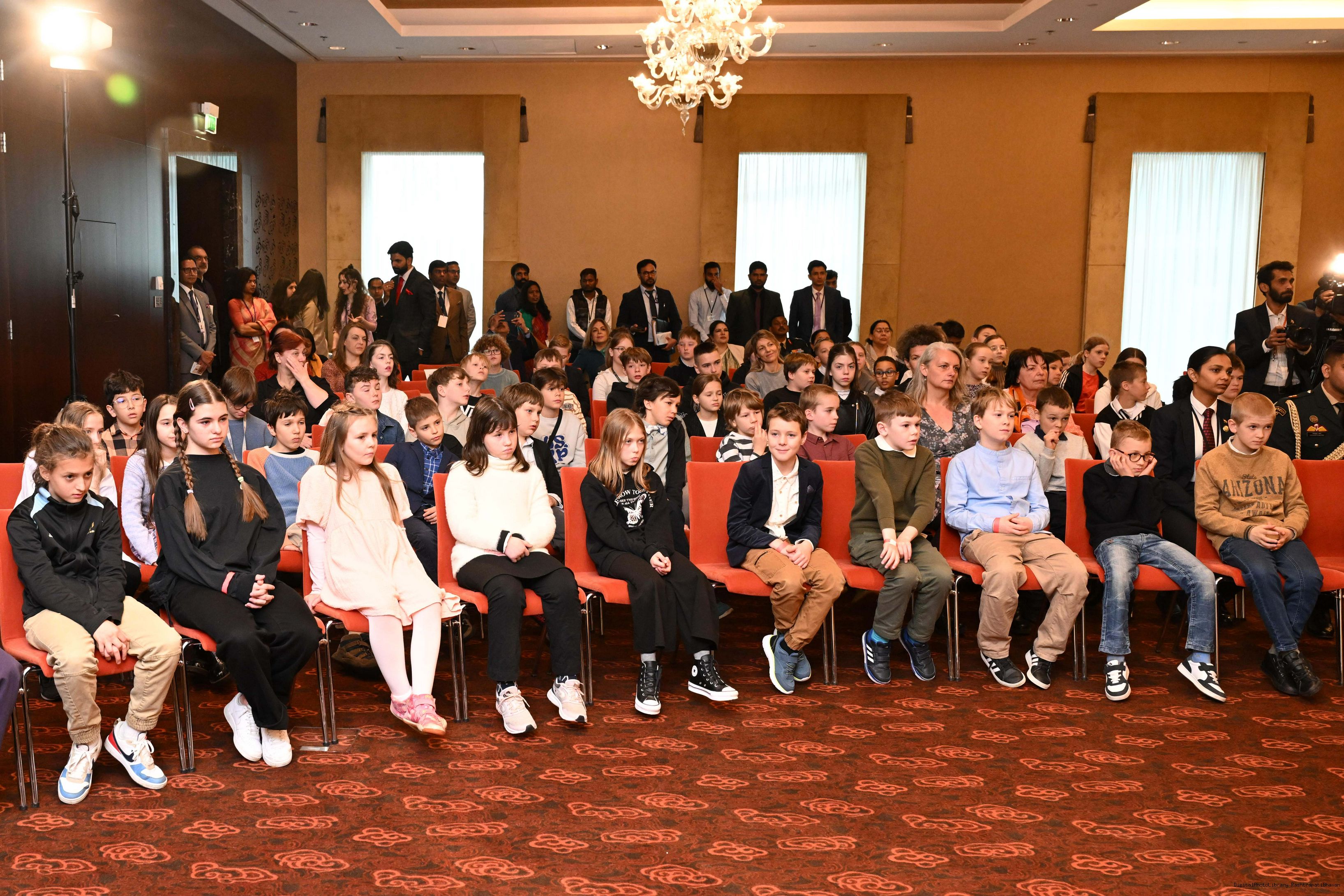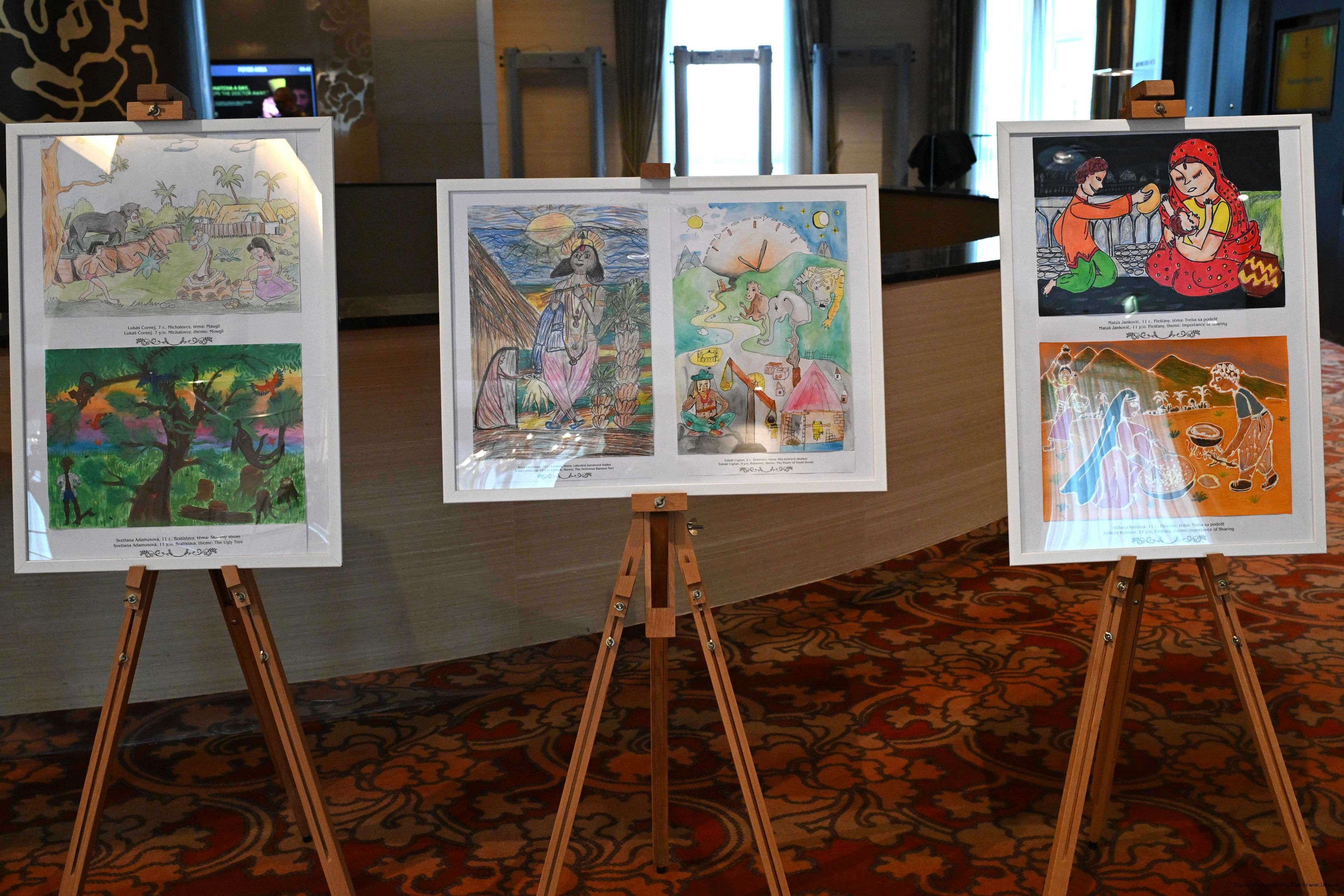 The President of India, Smt. Droupadi Murmu visited to the Exhibition of Painting on Indian Theme by Slovak Children at Grand Hotel River Park, Slovak on April 10, 2025.