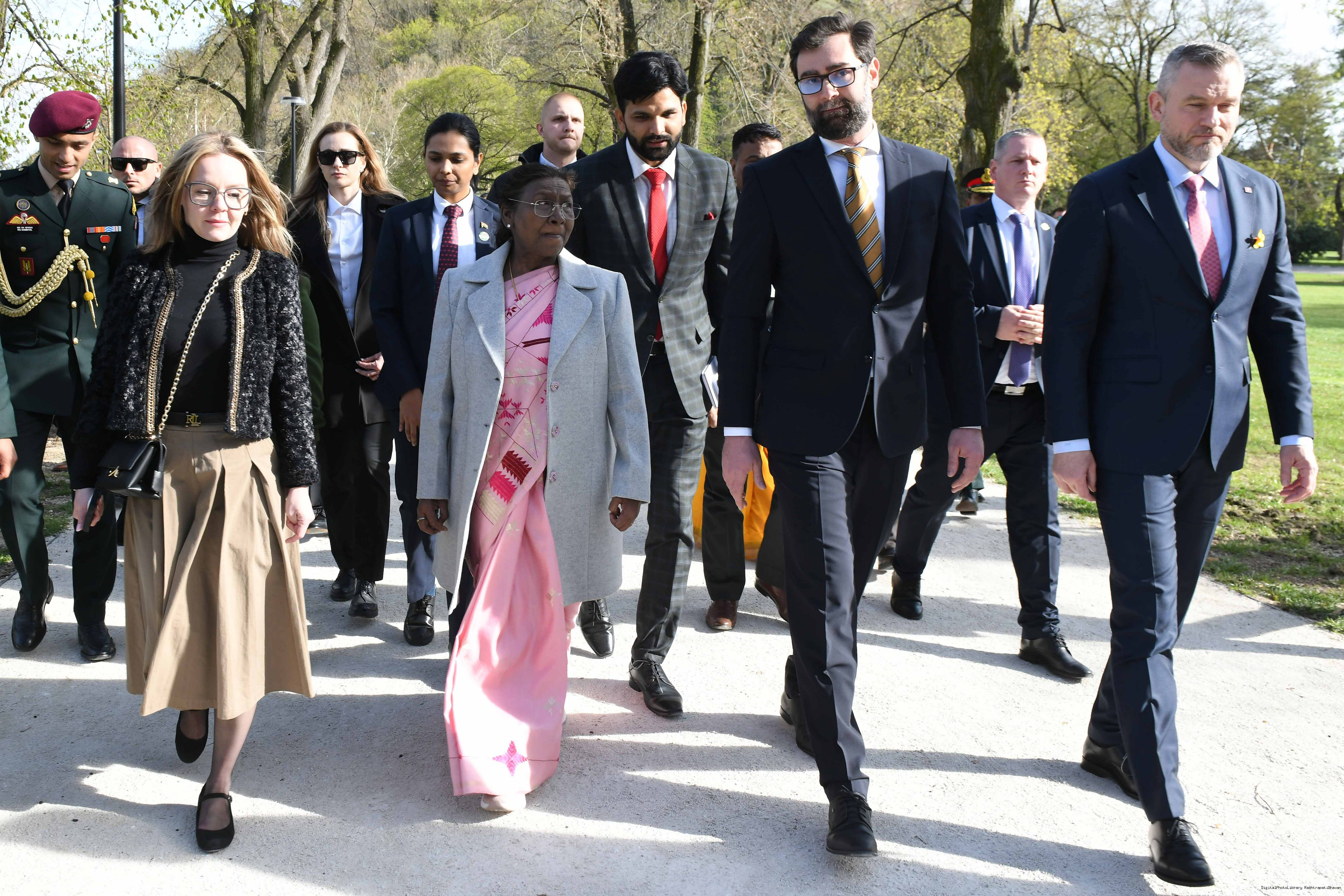 The President of India, Smt. Droupadi Murmu laid a wreath and paid her respects at the Gate of Freedom Memorial in Bratislava, Slovak on April 9, 2025.
