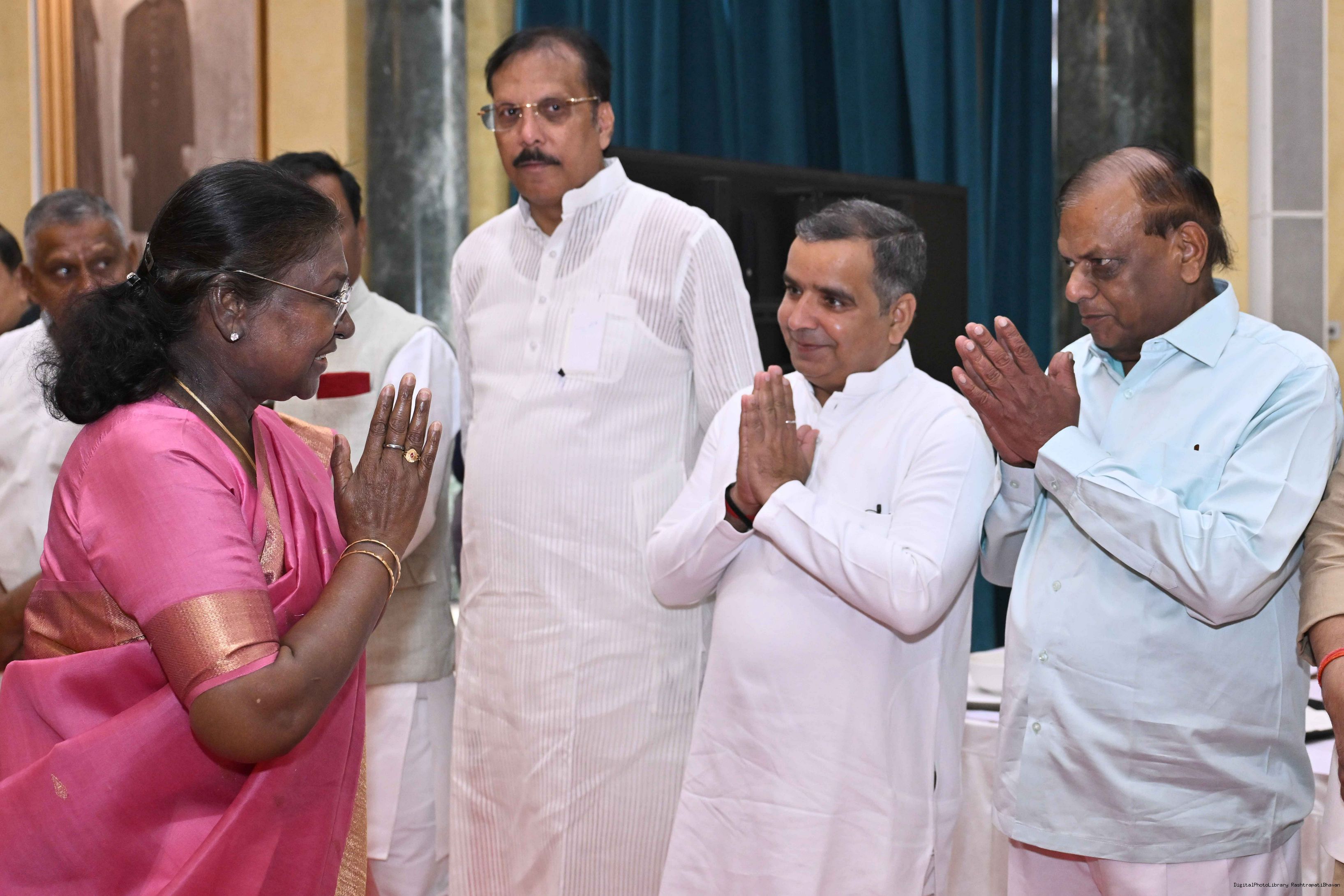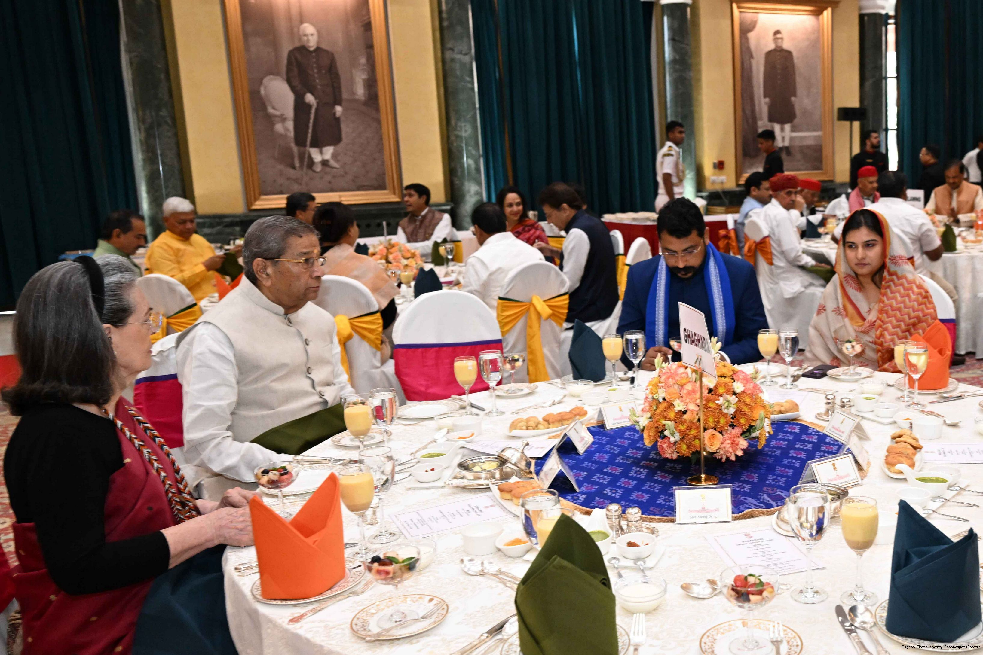 The President of India, Smt. Droupadi Murmu hosted Breakfast of Parliament (Lok Sabha and Rajya Sabha) at Rashtrapati Bhavan in New Delhi on March 28, 2025.