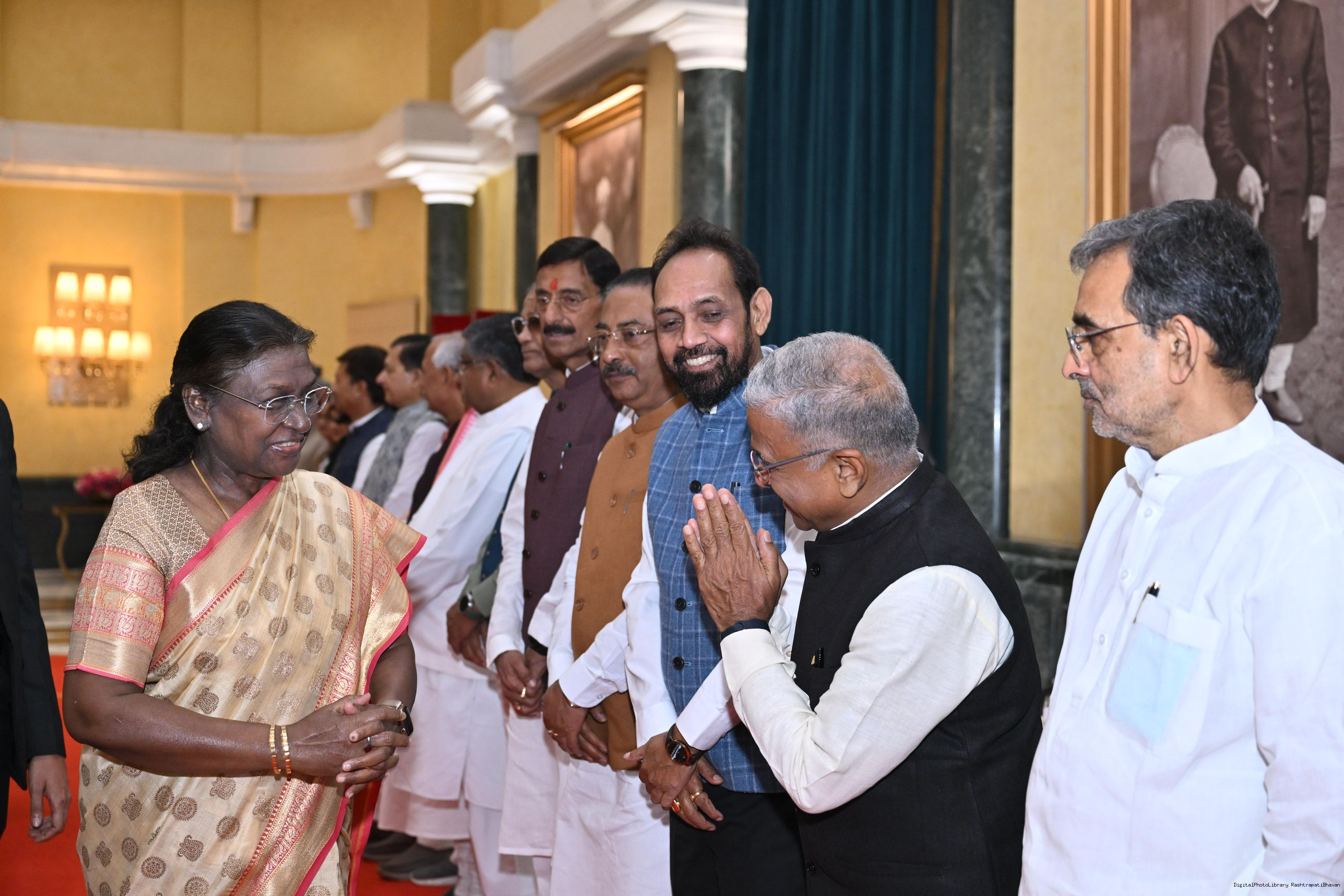 The President of India, Smt. Droupadi Murmu hosted Breakfast of Parliament (Lok Sabha and Rajya Sabha) at Rashtrapati Bhavan in New Delhi on April 4, 2025.