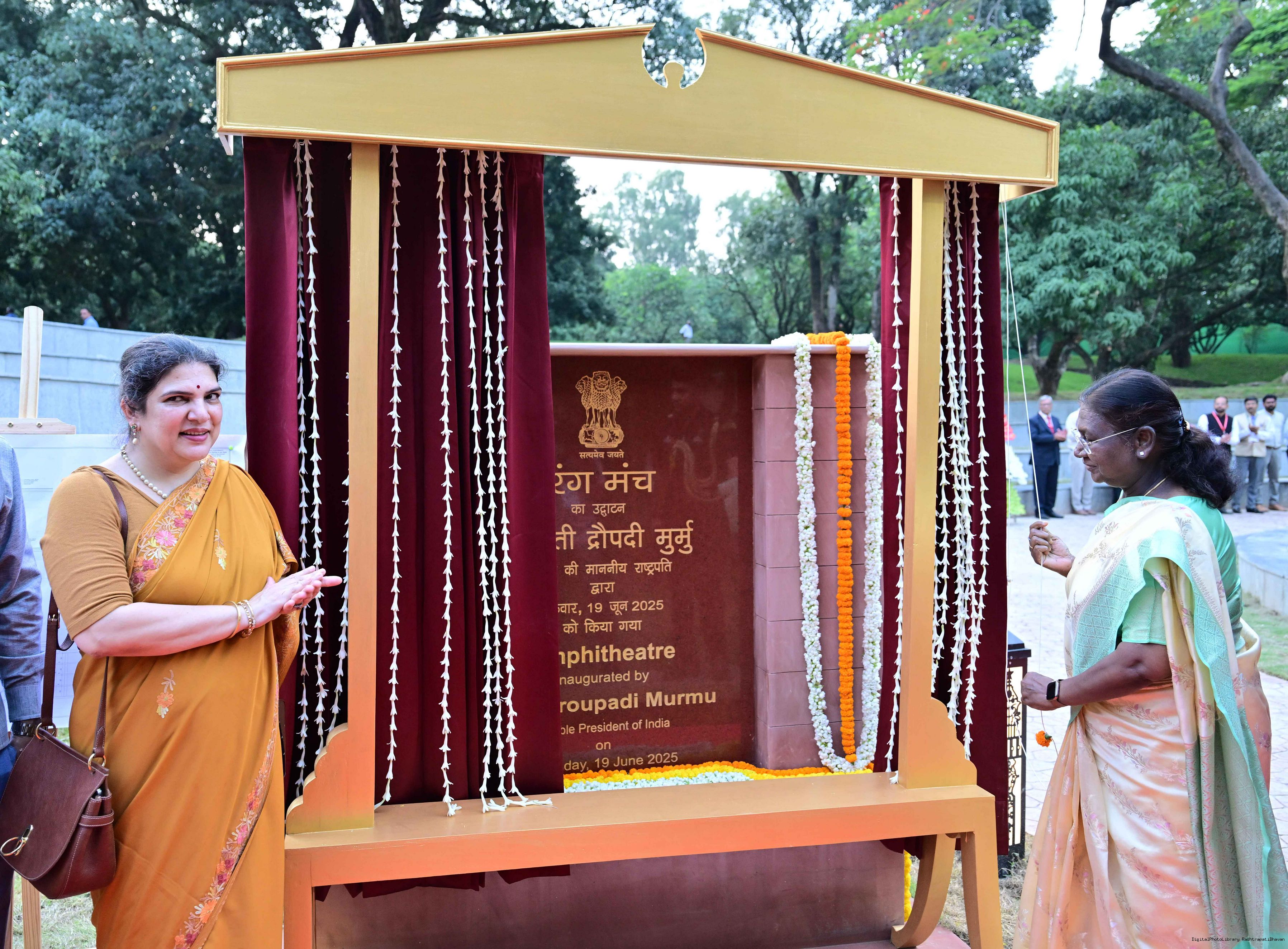 The President of India, Smt Droupadi Murmu inaugurated of Amphitheatre Foundation Stone Laying of Staff Quarters Stables Barracks at Rashtrapati Niketan Rajpur Road Dehradun on June 19, 2025.