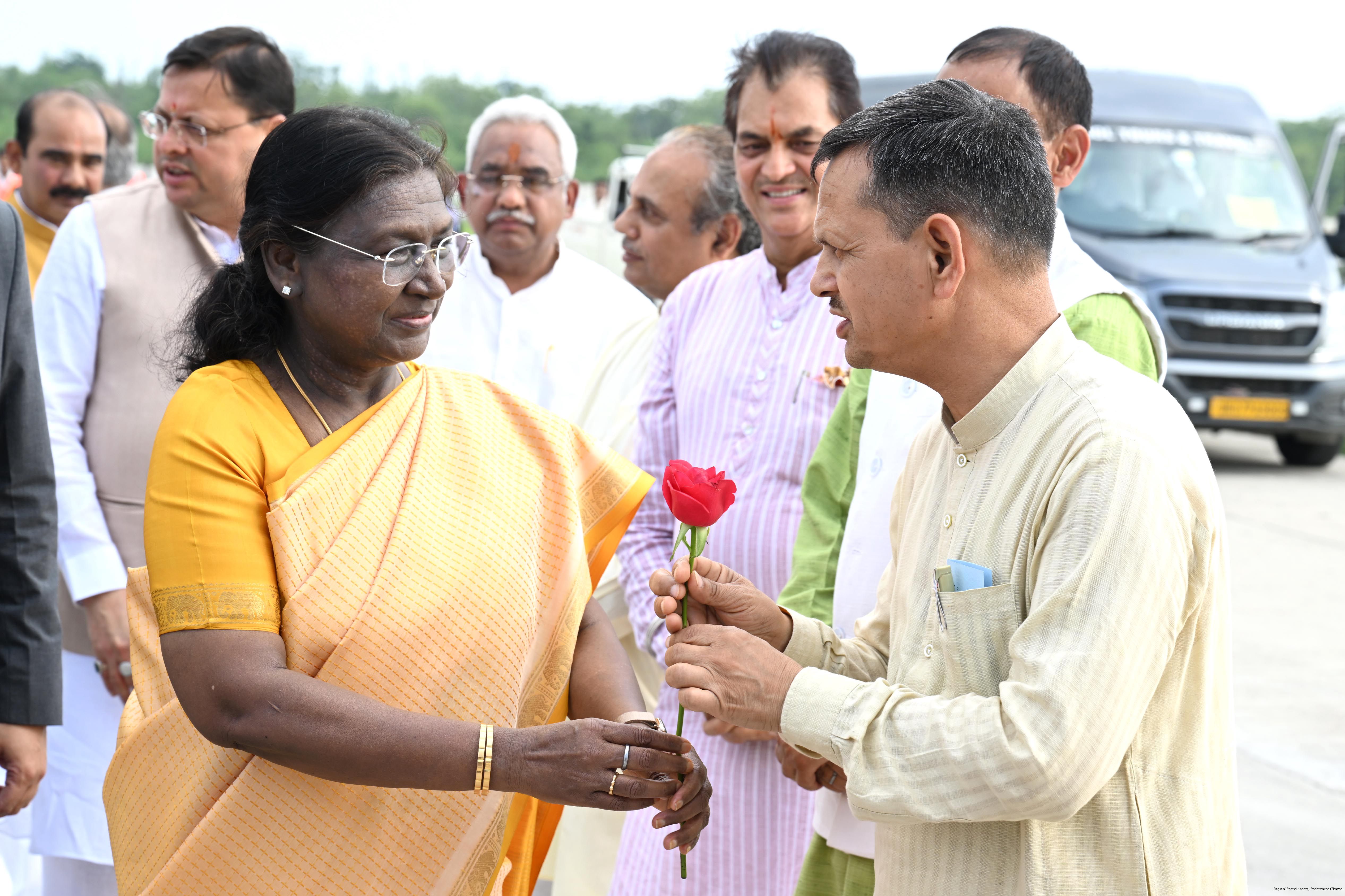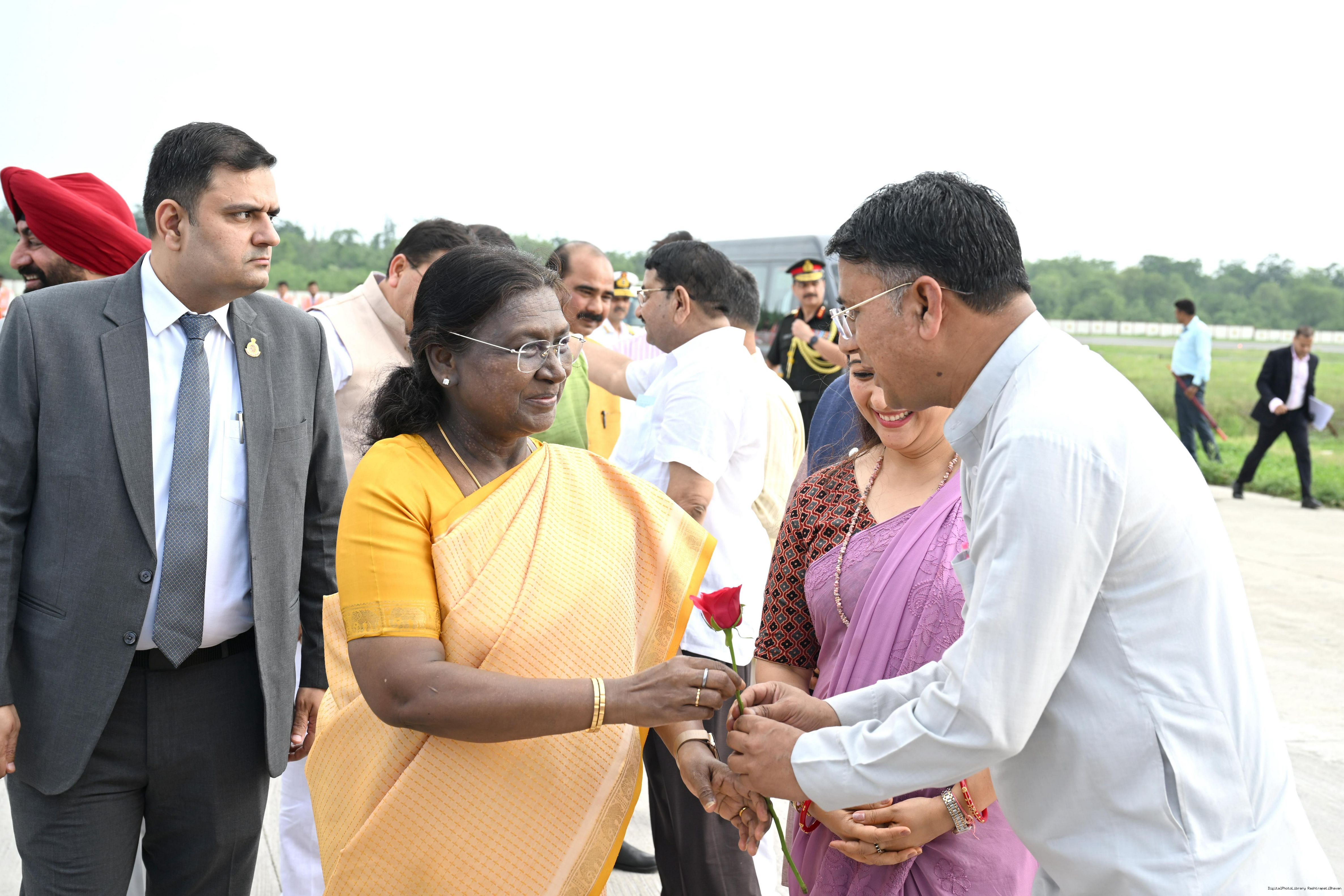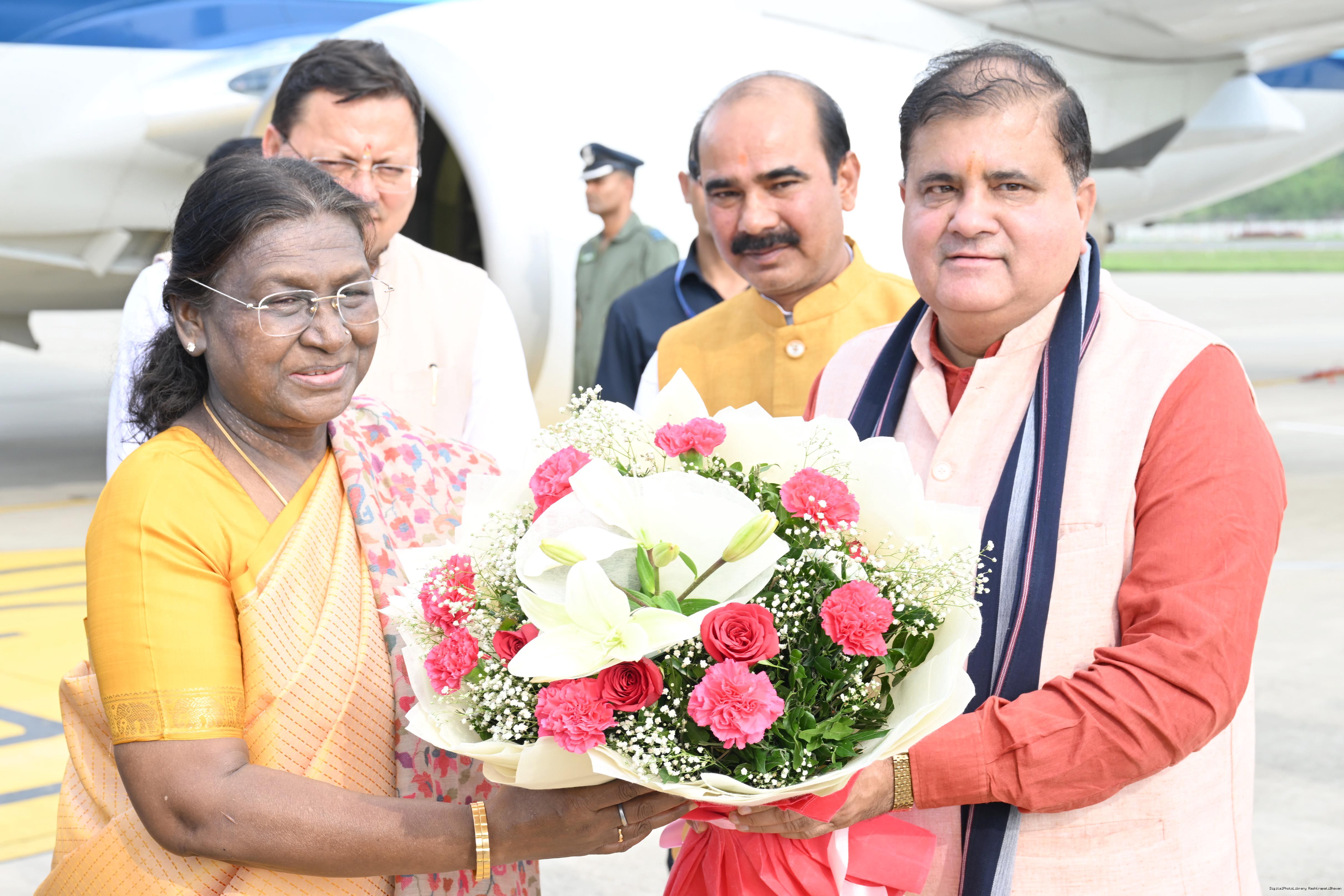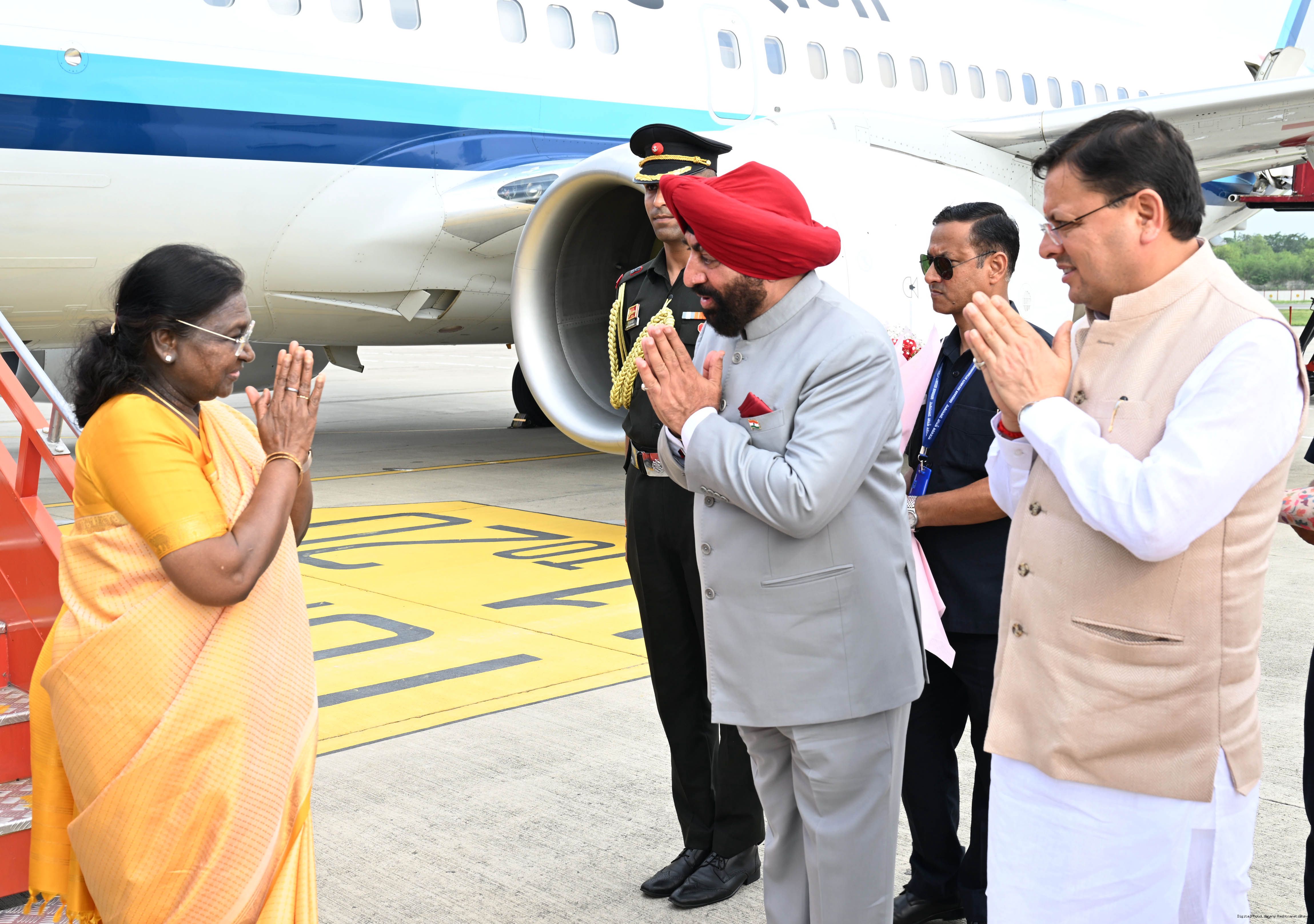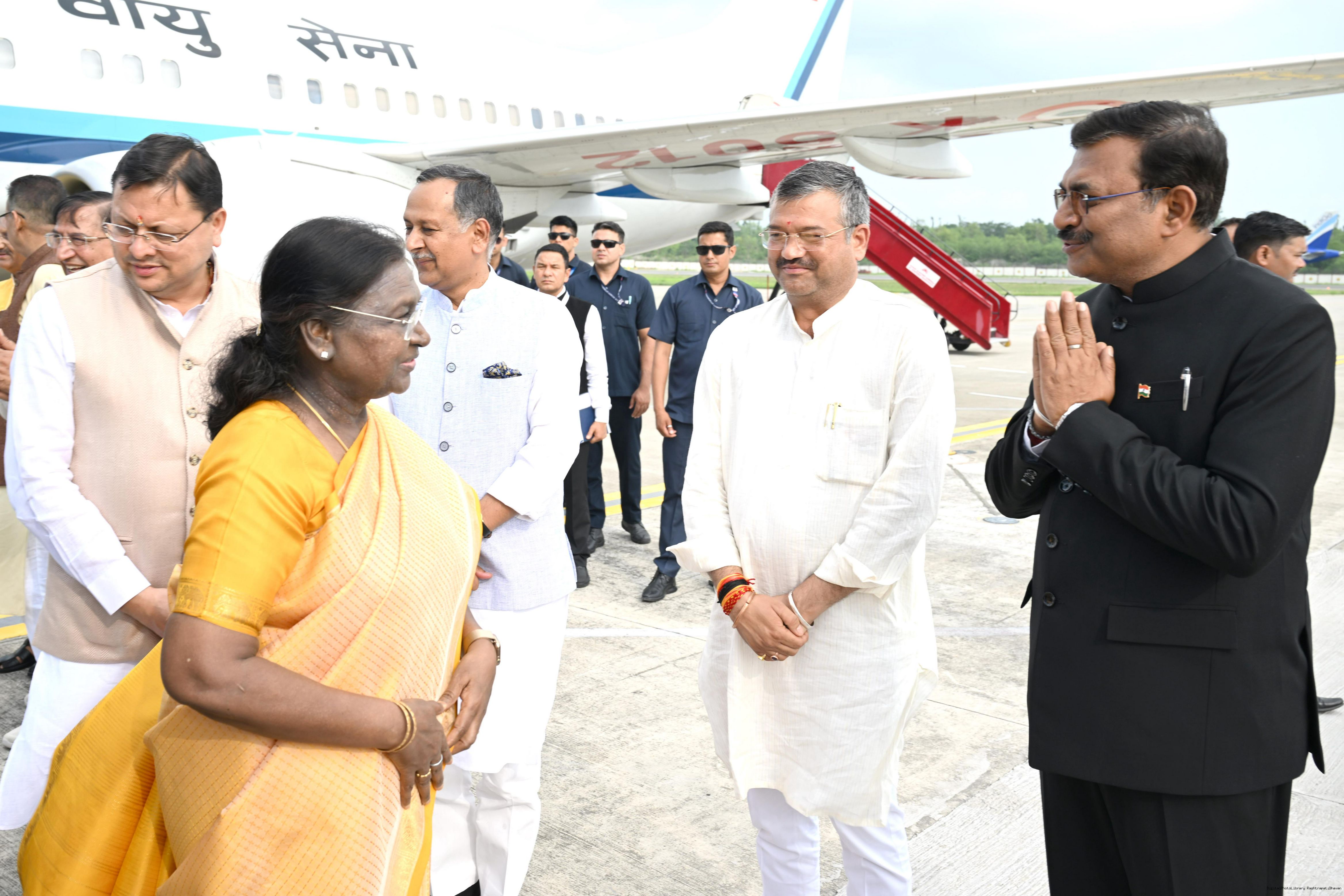 The Governor of Uttarakhand, Lt Gen Gurmit Singh (Retd.) and Chief Minister, Shri Pushkar Singh Dhami received the President of India, Smt Droupadi Murmu on her arrival at Dehradun on June 19, 2025.